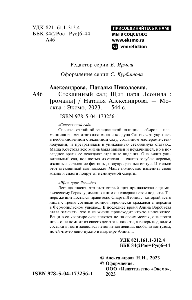Сервис сравнения цен СкидкаГИД предлагает сравнить цены на товар «Книга: Стеклянный сад Щит царя Леонида (Наталья Александрова); Эксмо, Редакция 1, 2022»