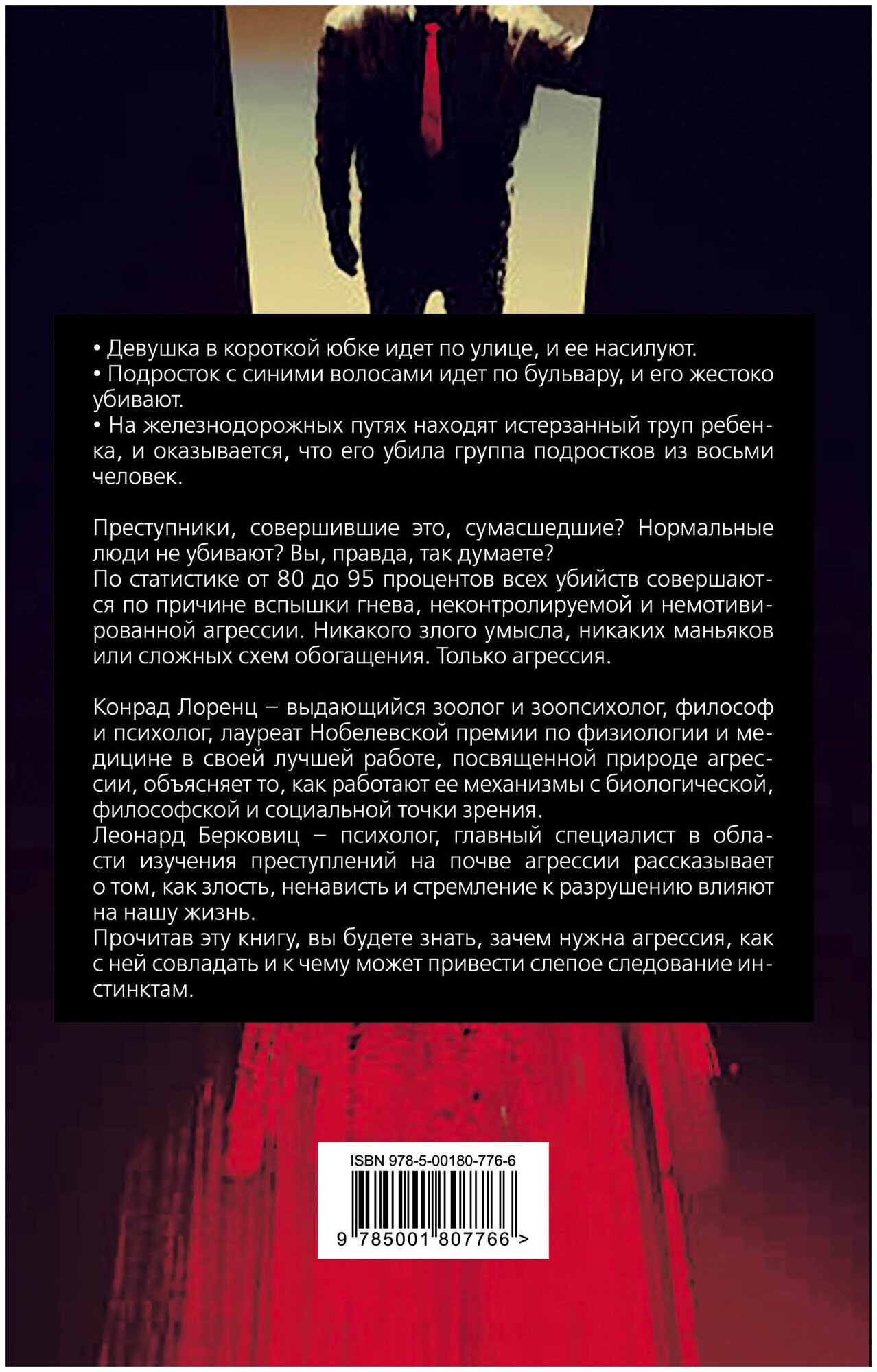Любопытная книга, в которую вошли сразу две работы авторитетных учёных. Конрад Лоренц - известный австрийский зоолог и биолог, пишет в первую очередь об агрессии с этологической точки зрения. Леонард Берковиц - американский профессор психологии, рассказывает уже о преступности непосредственно в человеческом социуме, квалифицируя её. Вместе два труда образуют одну книгу. Надо учитывать, что учёные свои работы написали ещё в прошлом веке, сейчас имеются более свежие данные