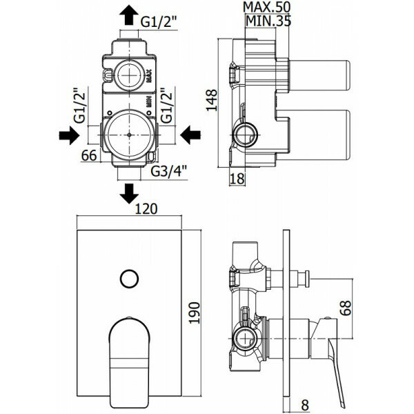 | Монтаж | Внутристенный (скрытый монтаж) |