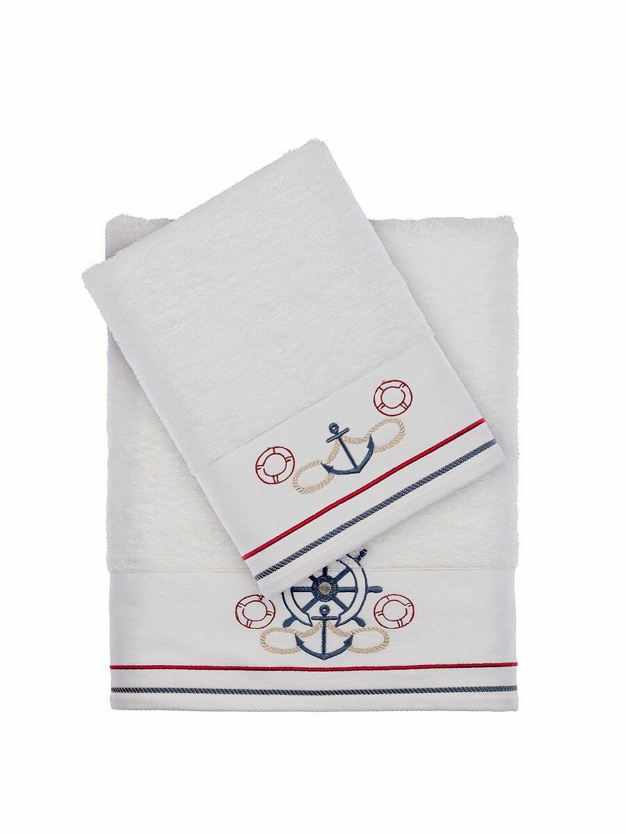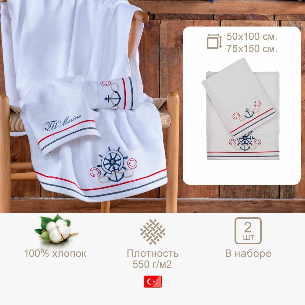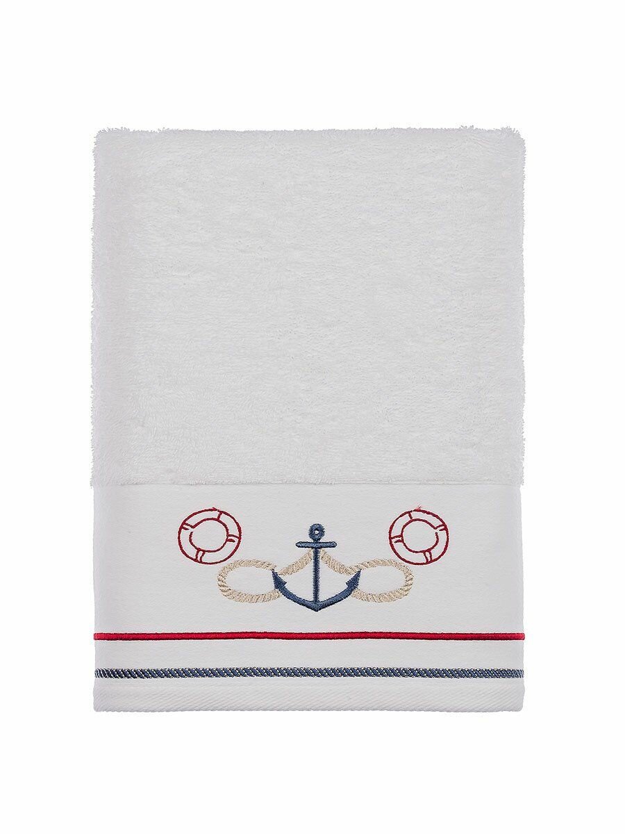 Махровое полотенце в морском дизайне от Tivolyo. На мягкой хлопковой махре расположилась контрастная вышивка и полоски. Материал нежный и очень приятный на ощупь, такое полотенце гипоаллергенно и идеально подойдет как взрослым, так и детям.