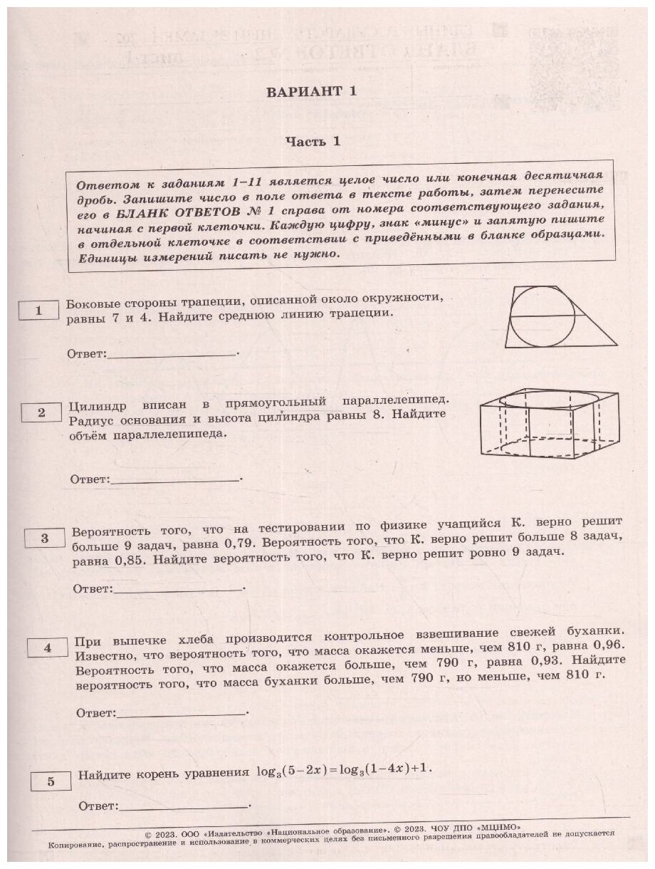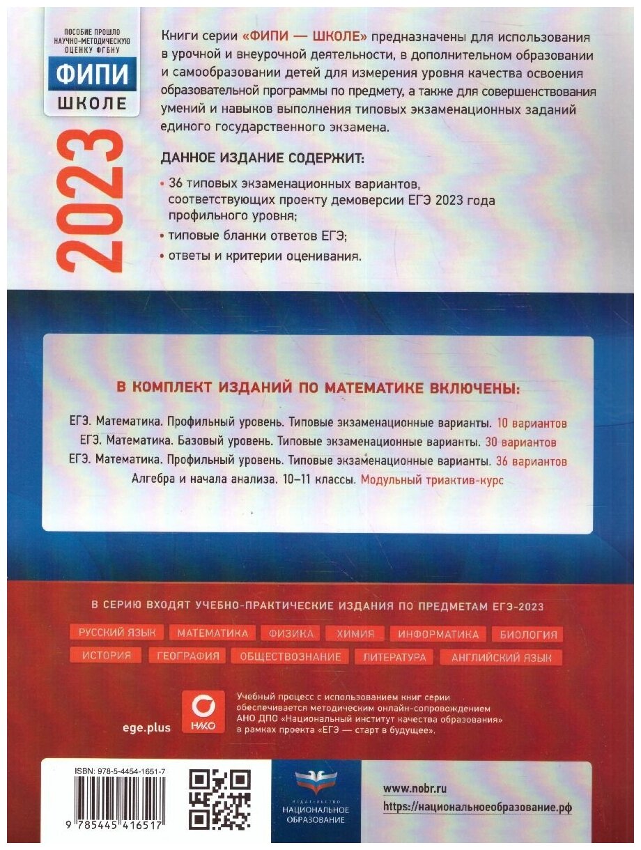 - 36 типовых экзаменационных вариантов, составленных в соответствии с проектом демоверсии КИМ ЕГЭ по математике профильного уровня 2023 года;