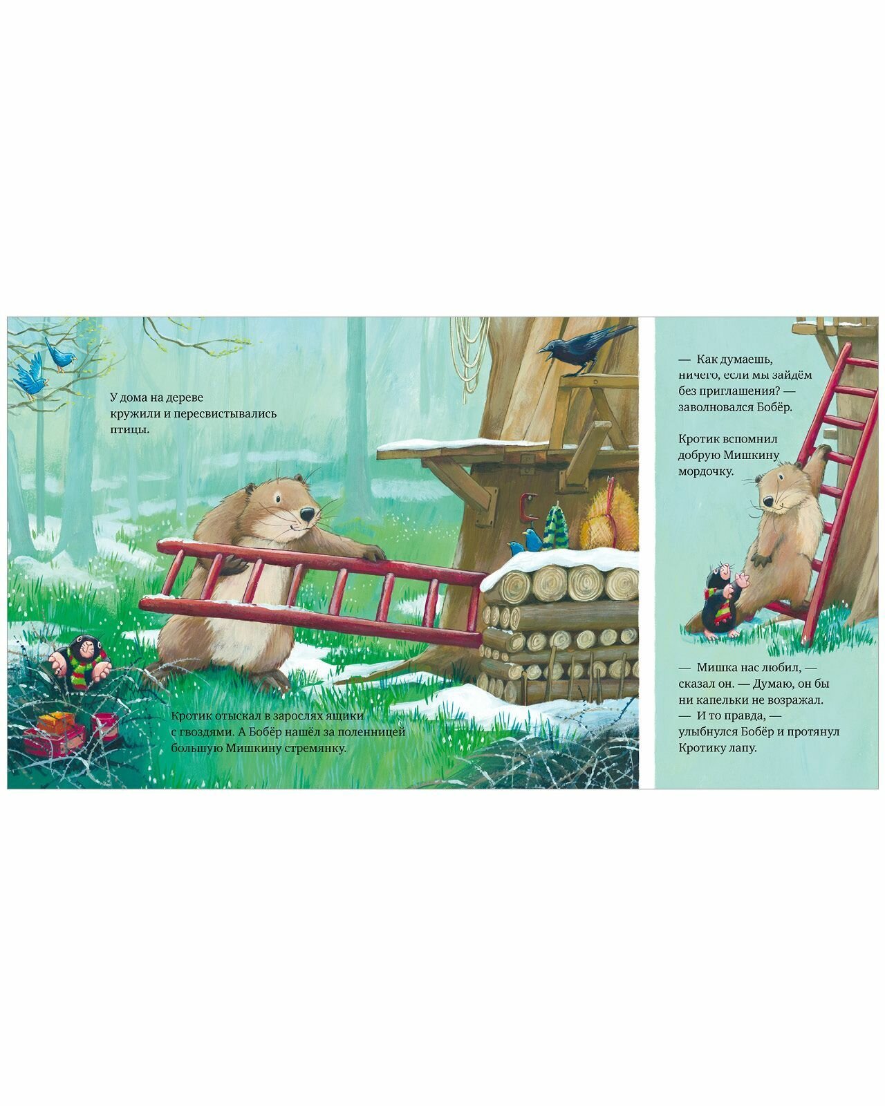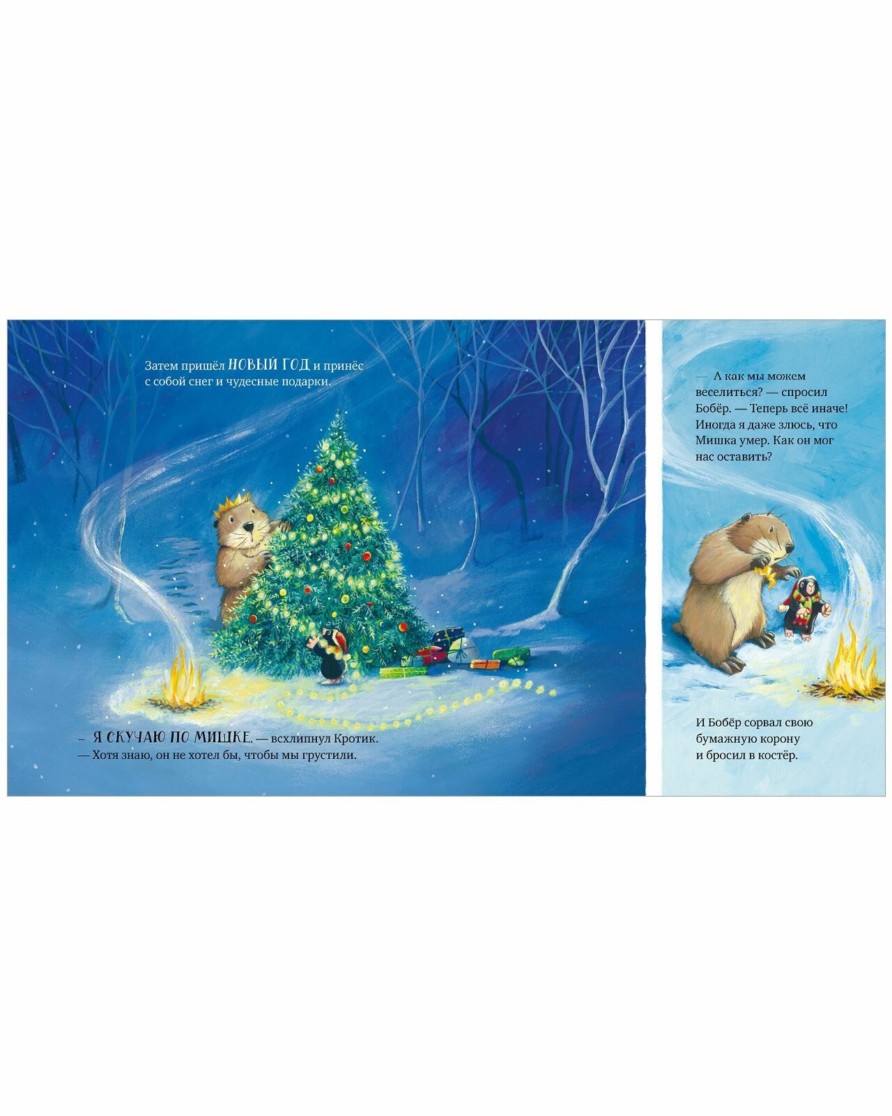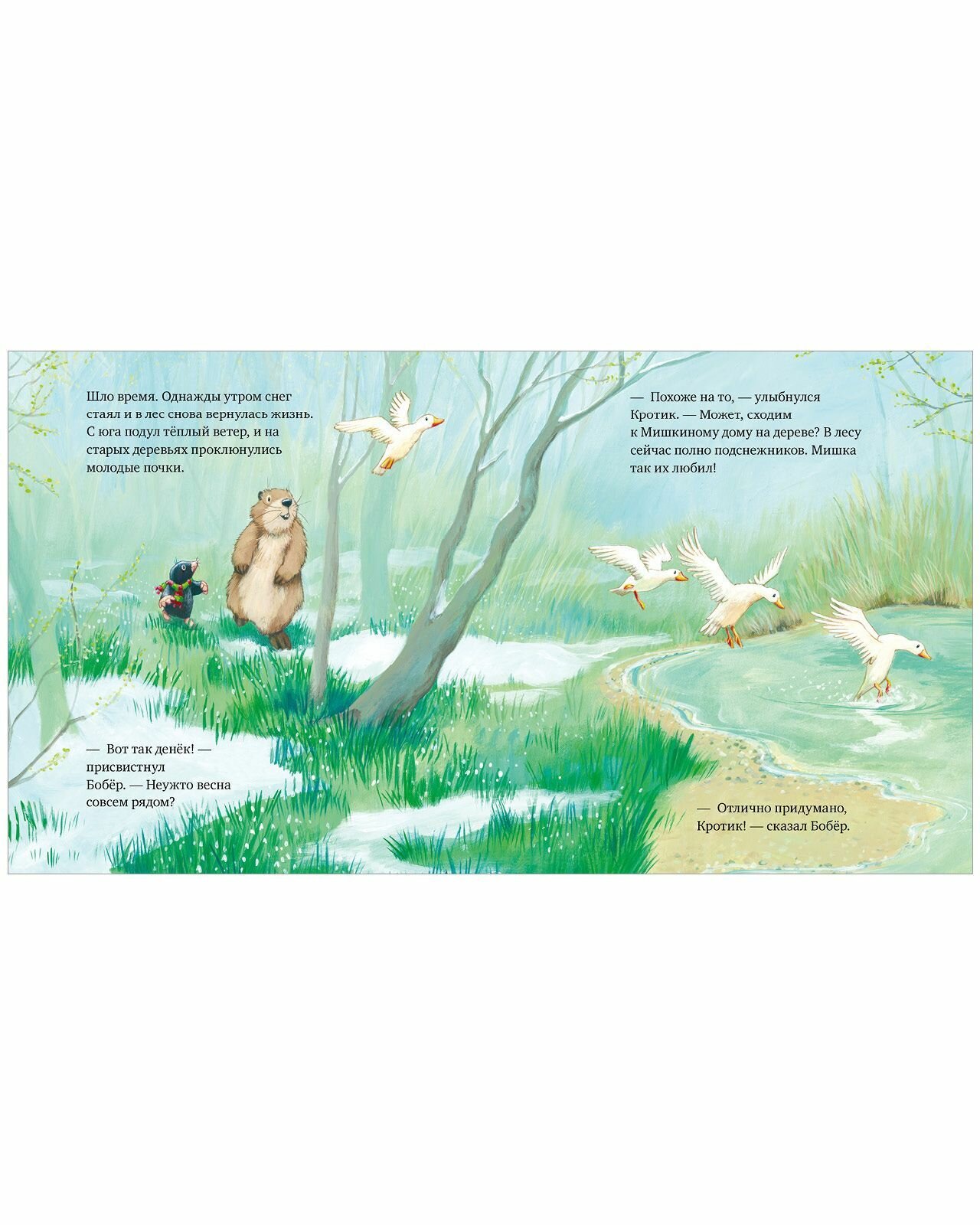 Бобер и Кротик ужасно скучают по своему другу Мишке. Но Мишки больше нет. Прошли лето, осень Друзья так и не привыкли, что он больше не позовет их в гости, что они не смогут рассказать ему о важных новостях. Но с ними остались теплые воспоминания и любовь к Мишке, которая будет согревать их и напоминать о том, что он всегда рядом, в их сердцах.