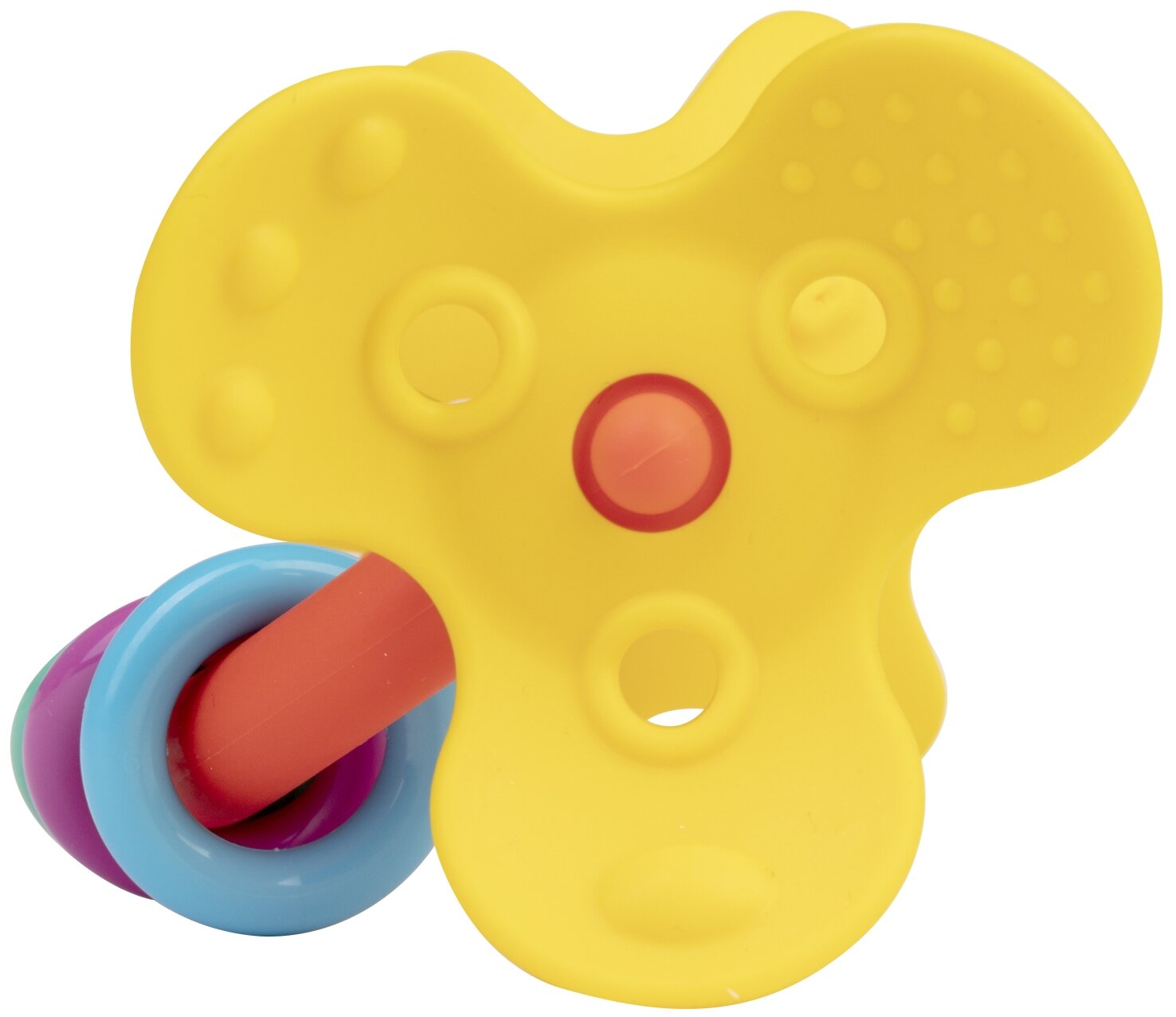 Великолепный, самый лучший. Когда заказывала, представляла его чуть побольше, а он такой масенький, классный, просто нет слов. Высокое качество, приятный на ощупь. Малышу в 3 месяца удобно держать, помещается в его ручке. Потрясающий грызунок с погремушечкой в виде колец. Рекомендую к покупке!