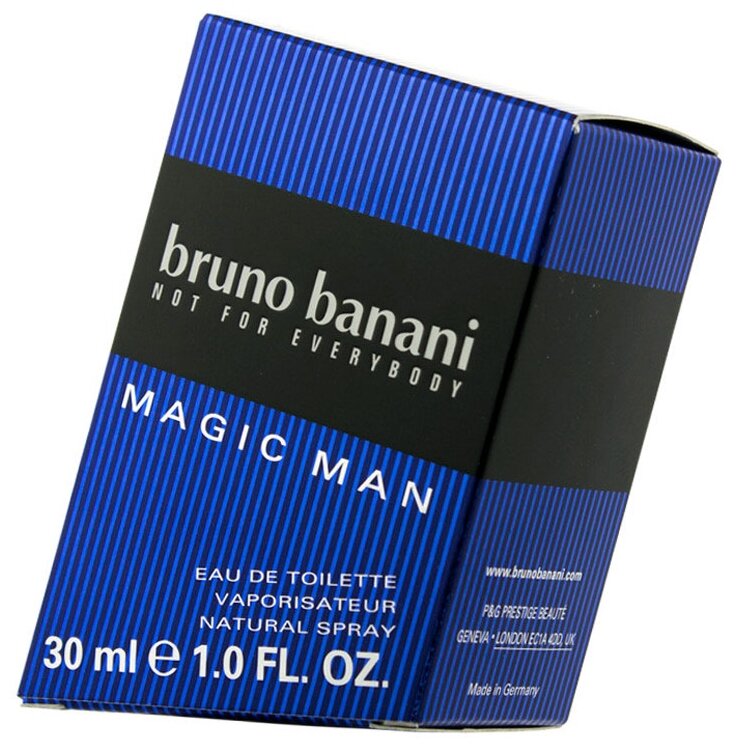 Magic Man – новый мужской аромат от популярного немецкого дома моды Bruno Banani, известного своей экологически чистой продукцией. Аромат создан в 2008 году. Относится к группе ароматов древесные пряные. Аромат Magic Man Bruno Banani – это волшебное зелье, некая невидимая магическая материя, окутывающая кожу и притягивающая женские сердца своим природным запахом. Композиция аромата начинается нотами специй, джина и кардамона из Гватемалы, плавно растворяясь в нотах сердца: цикламене, какао и бархотке. К концу дня вы ощутите на своей коже устойчивый шлейф из нот пачули и амбры.