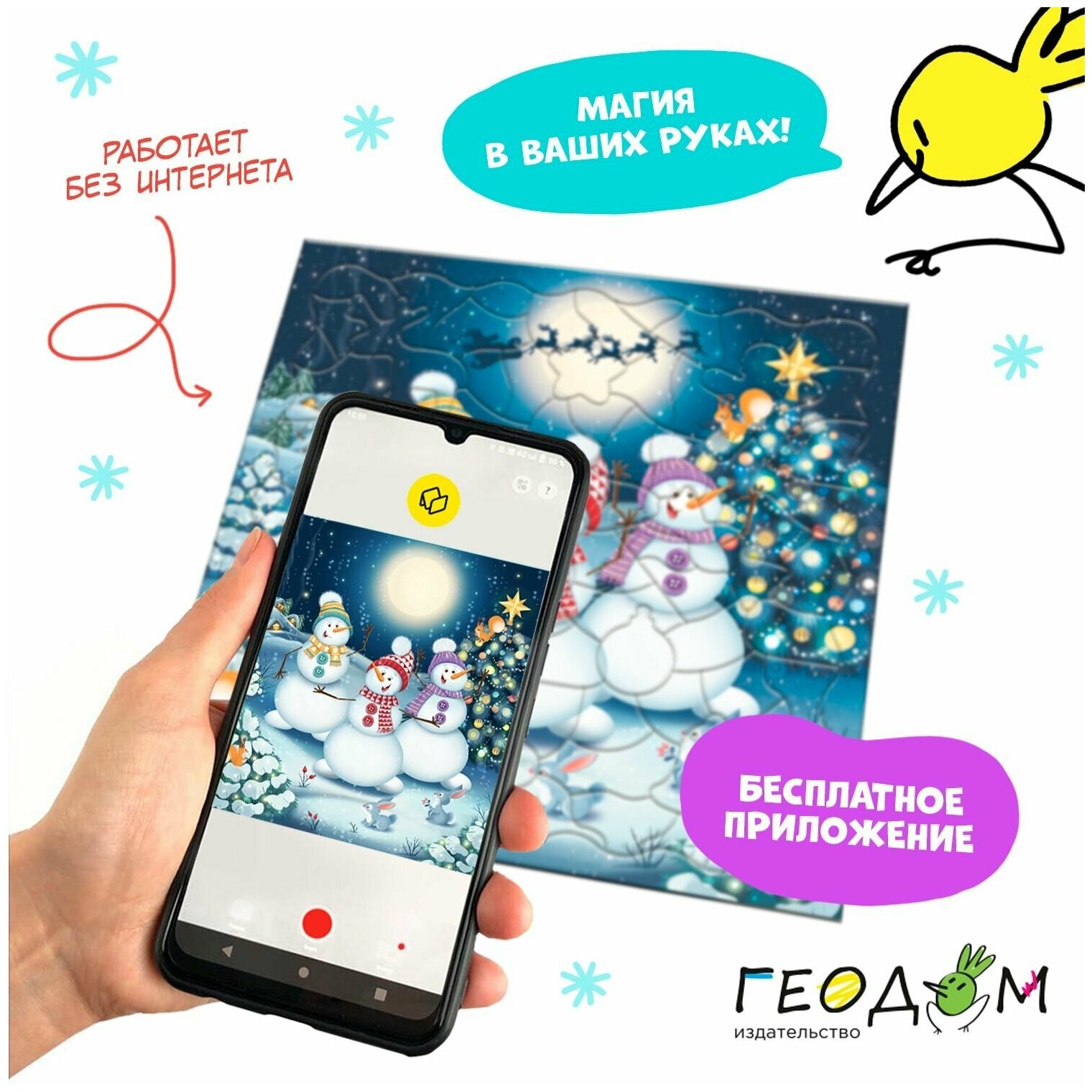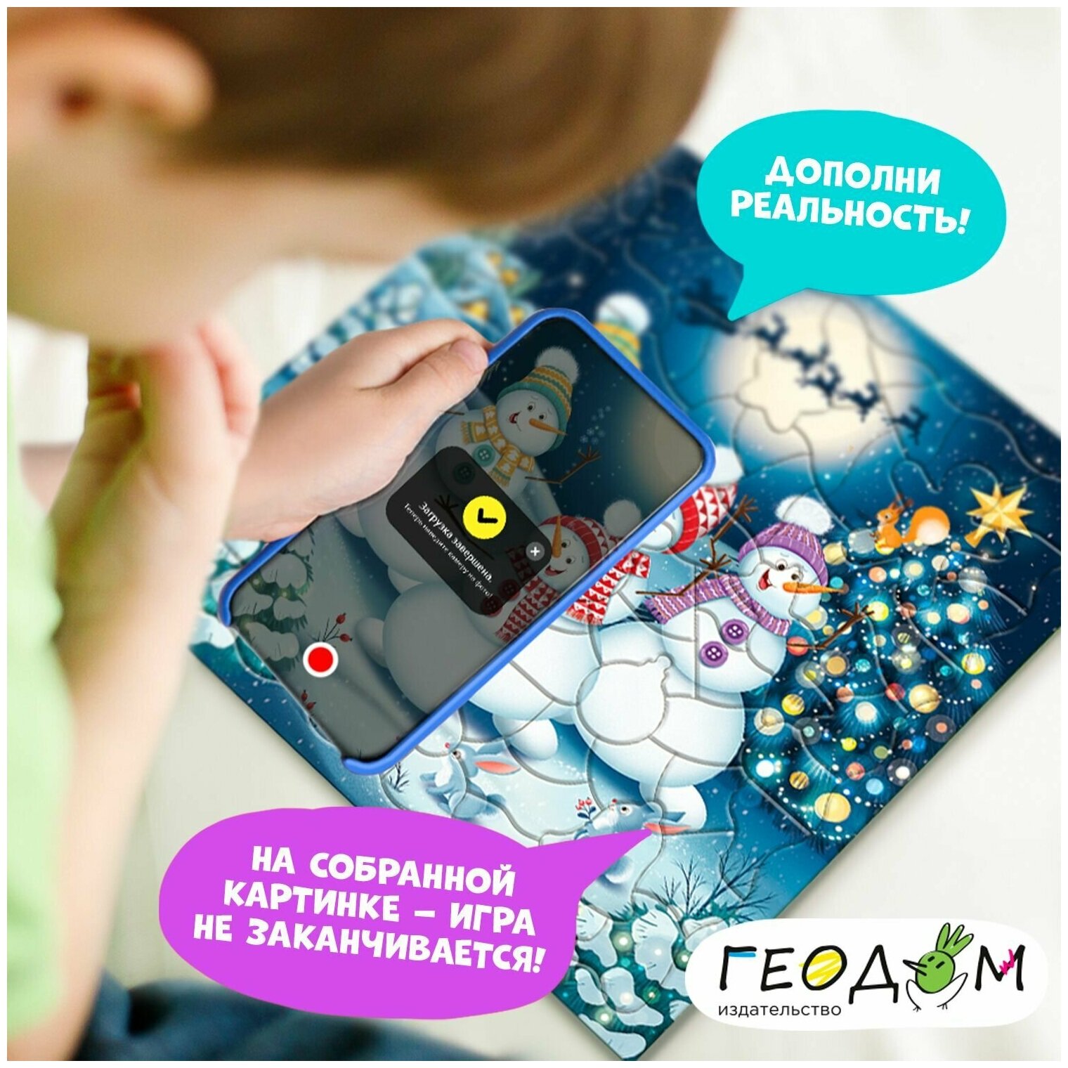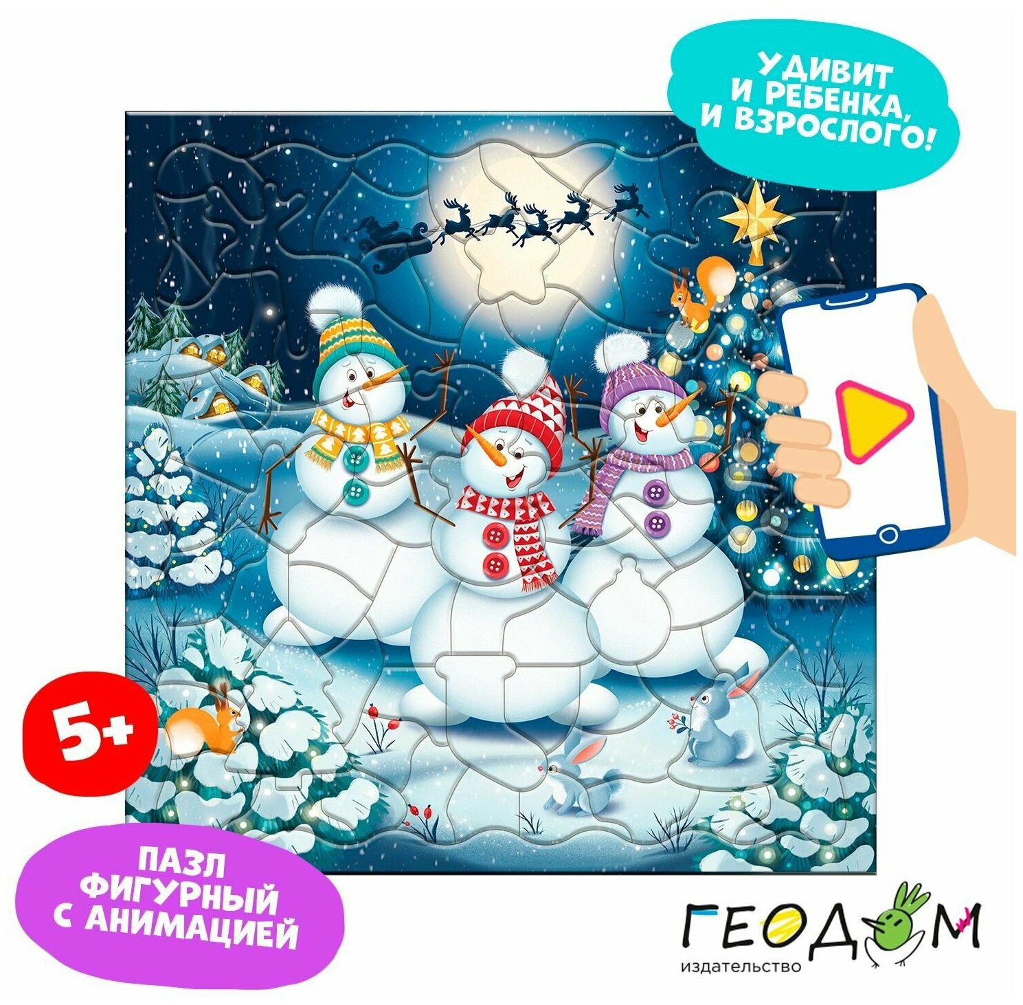 Пазл фигурный Танцующие снеговики. 80 деталей + дополненная реальность Геодом