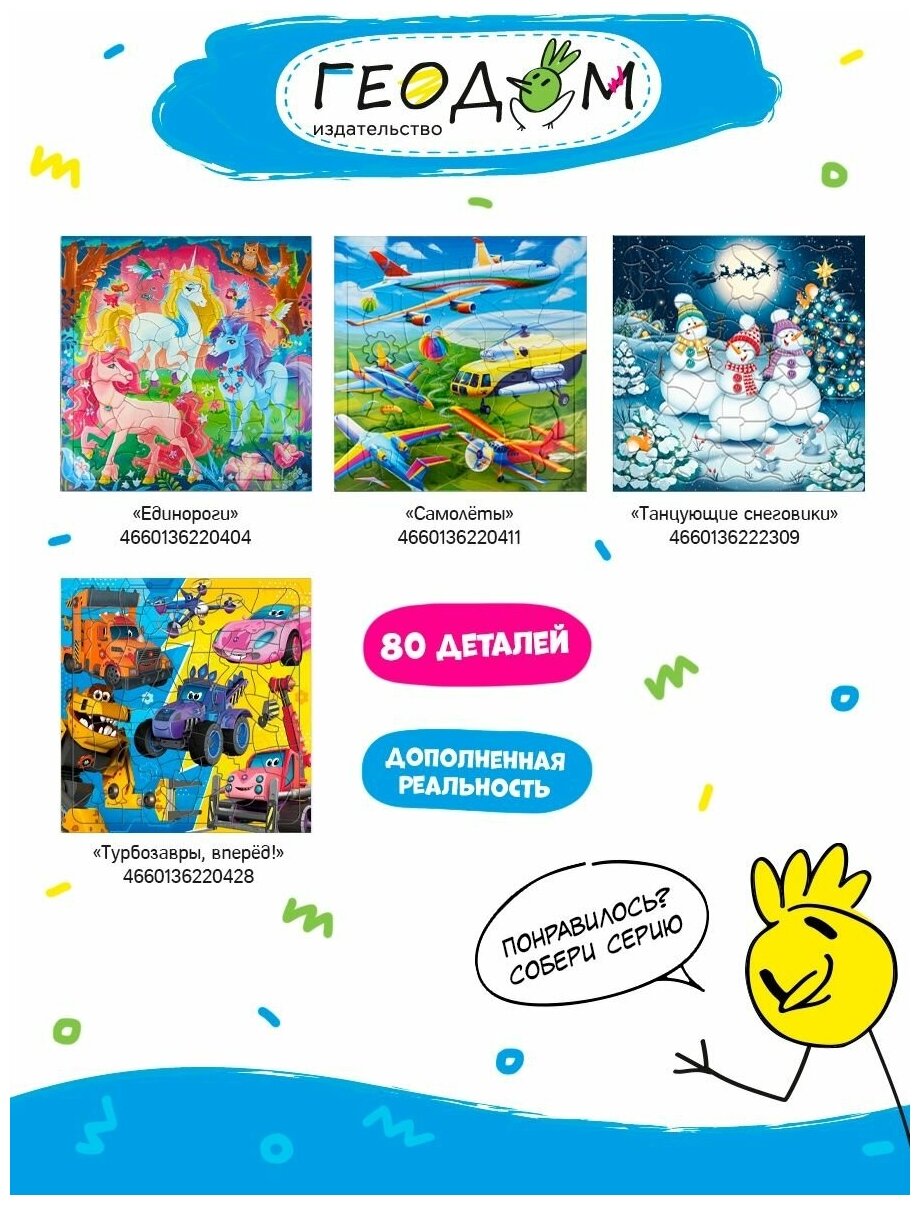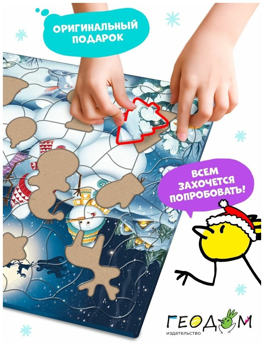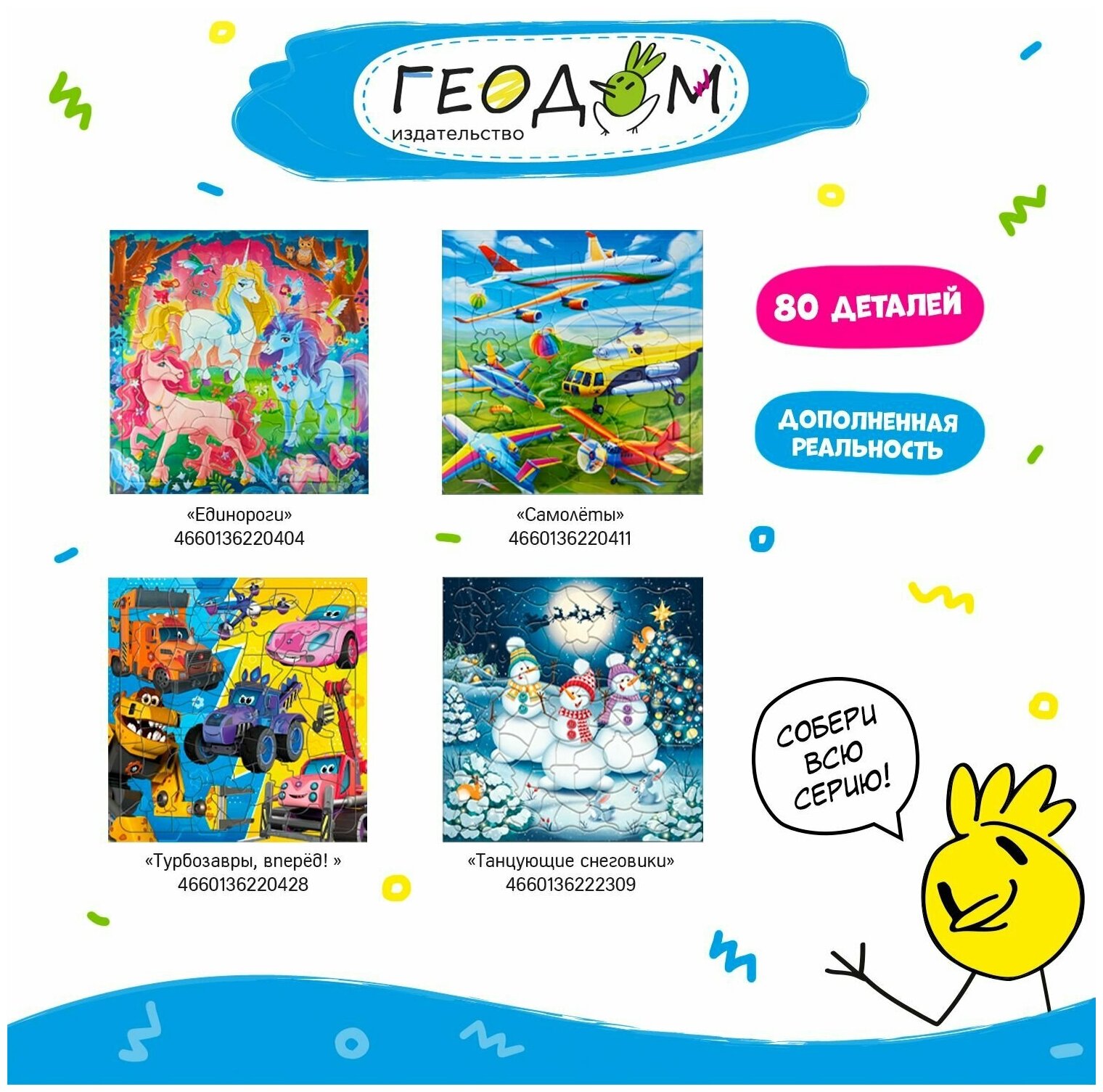 Пазл фигурный Танцующие снеговики. 80 деталей + дополненная реальность Геодом