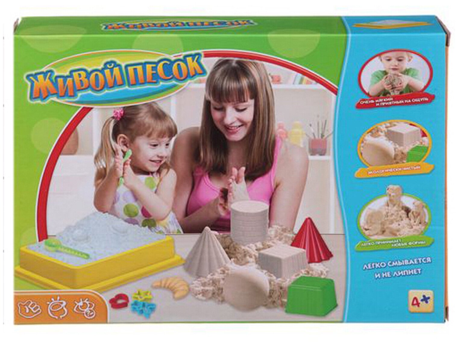 В наборе: живой песок (300 г.),6 формочек,3 лопатки.