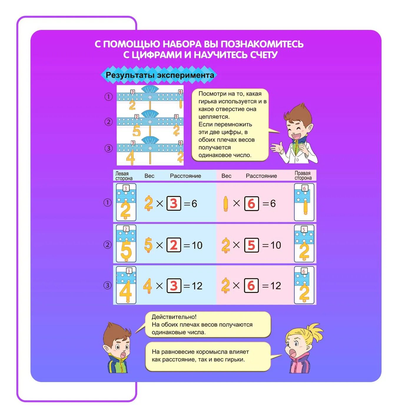 Набор "Игры с числами" расскажет и покажет, что же такое вес предметов, и сколько весят привычные вещи. Как использовать рычажные весы, и что это за прибор, влияет ли форма предмета на его вес, как уравновесить весы неравными грузами - эти и многие другие эксперименты можно произвести с помощью данного набора!