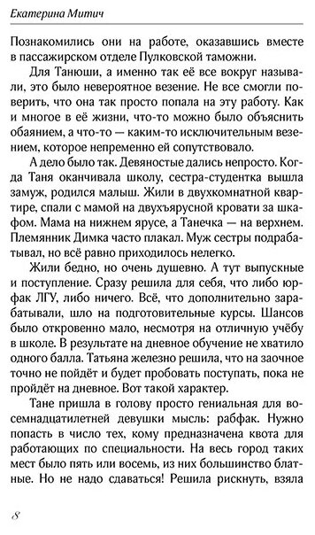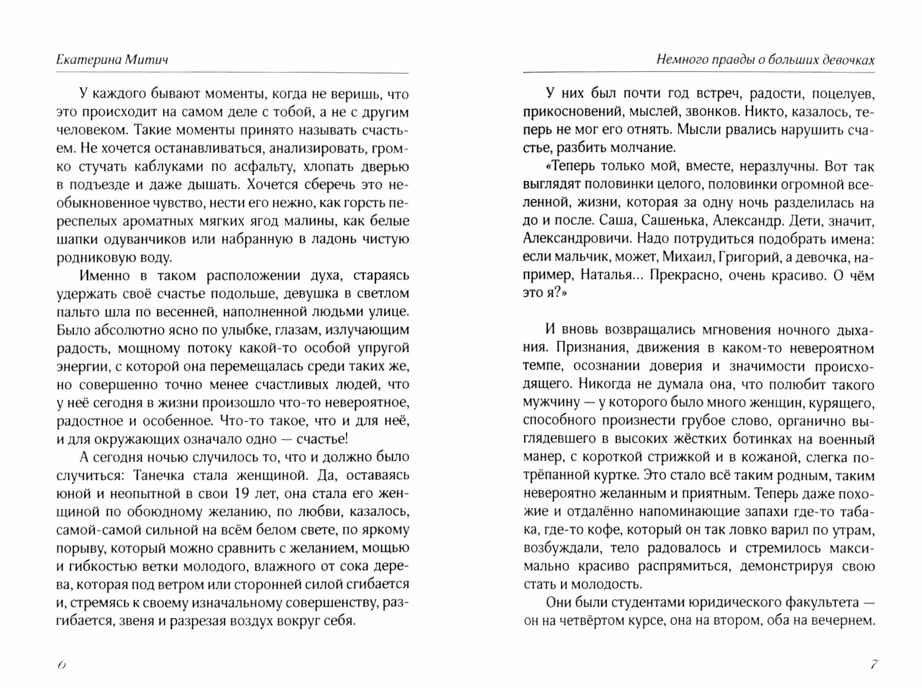 Три истории, каждая из которых читается на одном дыхании - прекрасный слог, яркий образный язык, живые и узнаваемые персонажи, истории, особенно понятные и близкие той разновидности женщин, которых называют «большими девочками», в которых парадоксальным образом сочетаются хрупкость и сила, ранимость и мужественность, робость и решительность, чистота и какая-то естественная мудрость. Буду ждать новых произведений Екатерины Митич.
