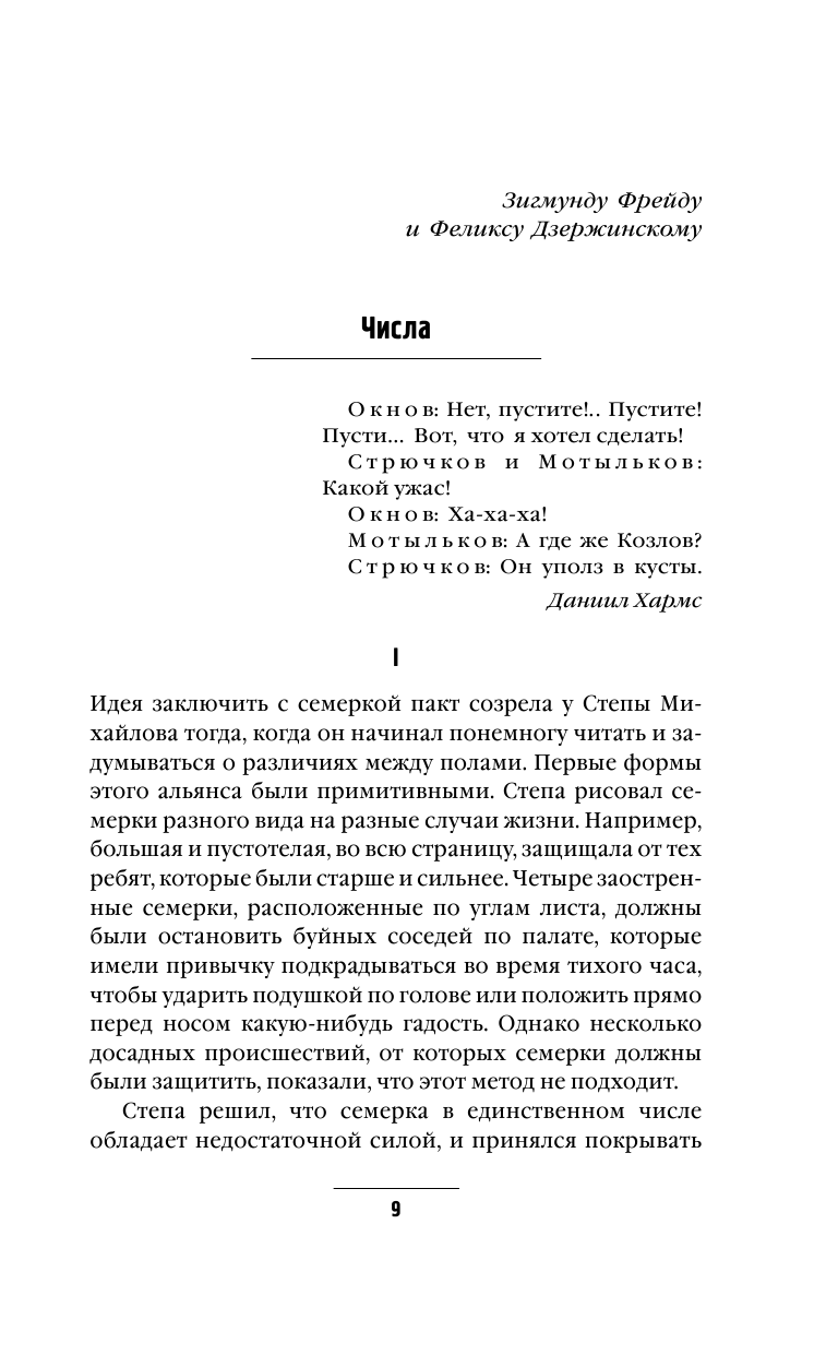 Книга Виктора Пелевина с непростым названием "ДПП (НН)" - это причудливая мозаика из романа и рассказов-миниатюр, подчиненных одной теме: переходу из ниоткуда в никуда. Главный герой романа "Числа" - банкир Степа, который всю свою жизнь строит как служение числу 34.