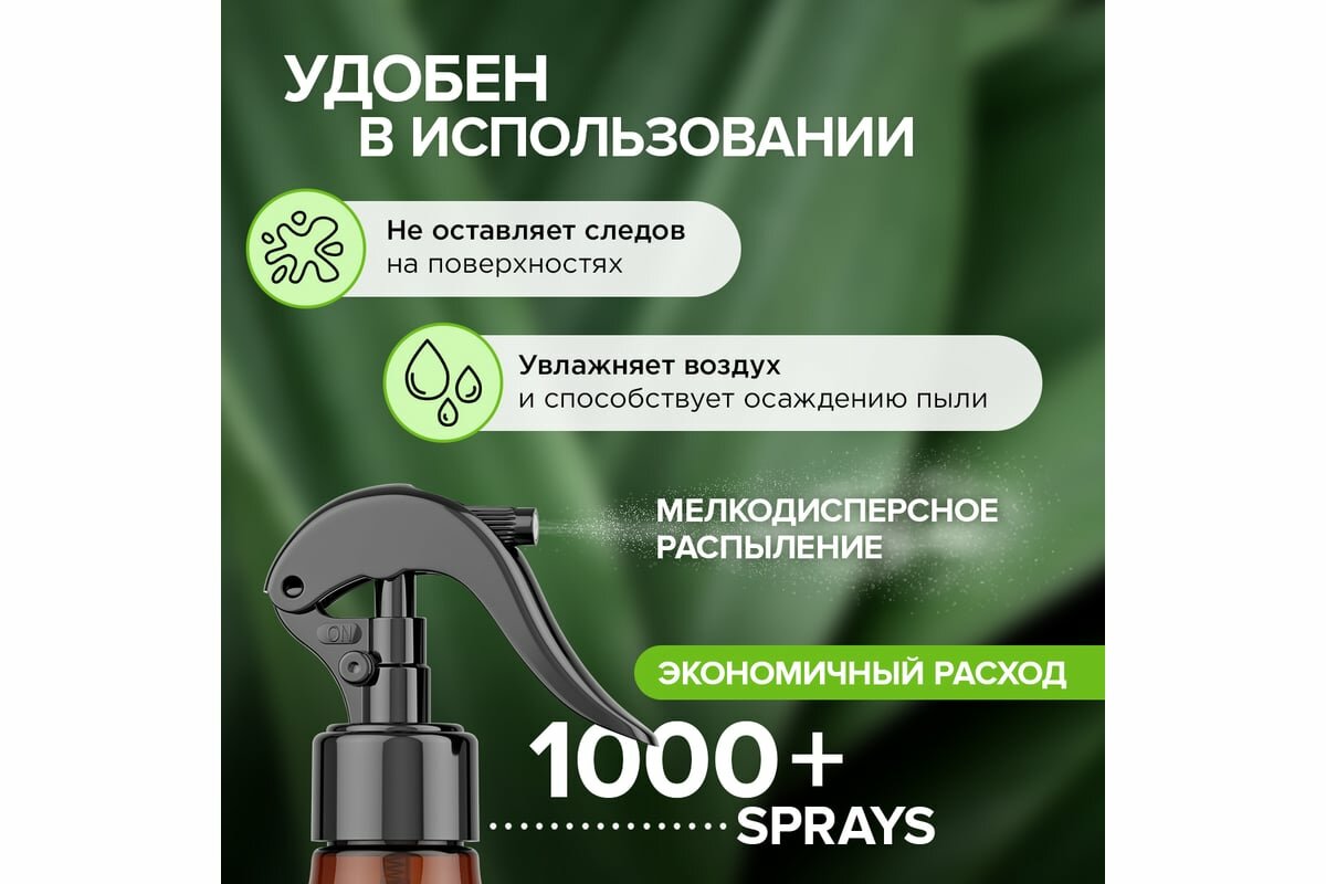 | Состав | Подготовленная вода > 30%; гипоаллергенная парфюмерная композиция с эфирными маслами бергамота, корицы и сандала < 5%; комплекс Н-тензидов < 5%; поглотитель запаха < 5%; изопропиловый спирт высокой степени очистки < 5%; консервант (бензоат натрия) < 5% |