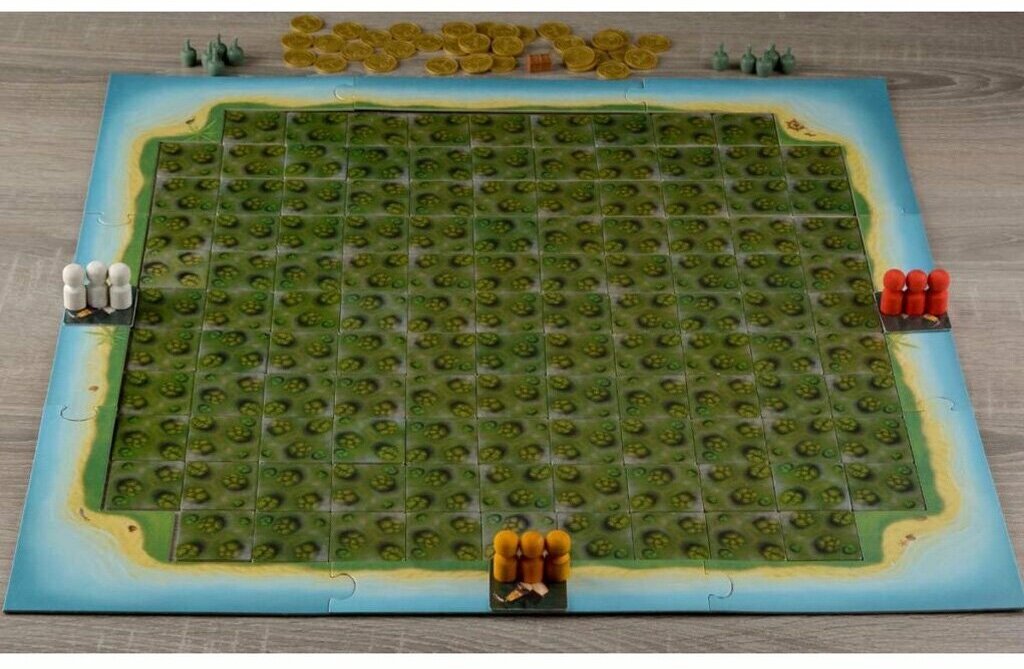 | Комплект игры | поле из 117 квадратных клеток, корабли, рамка из 8 частей, пираты красного, жёлтого, белого и чёрного цветов, 3 персонажа аборигенов, 37 монет, 10 бутылок рома, сокровище с испанского галеона |