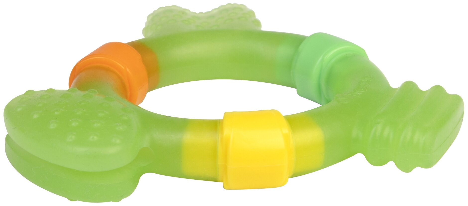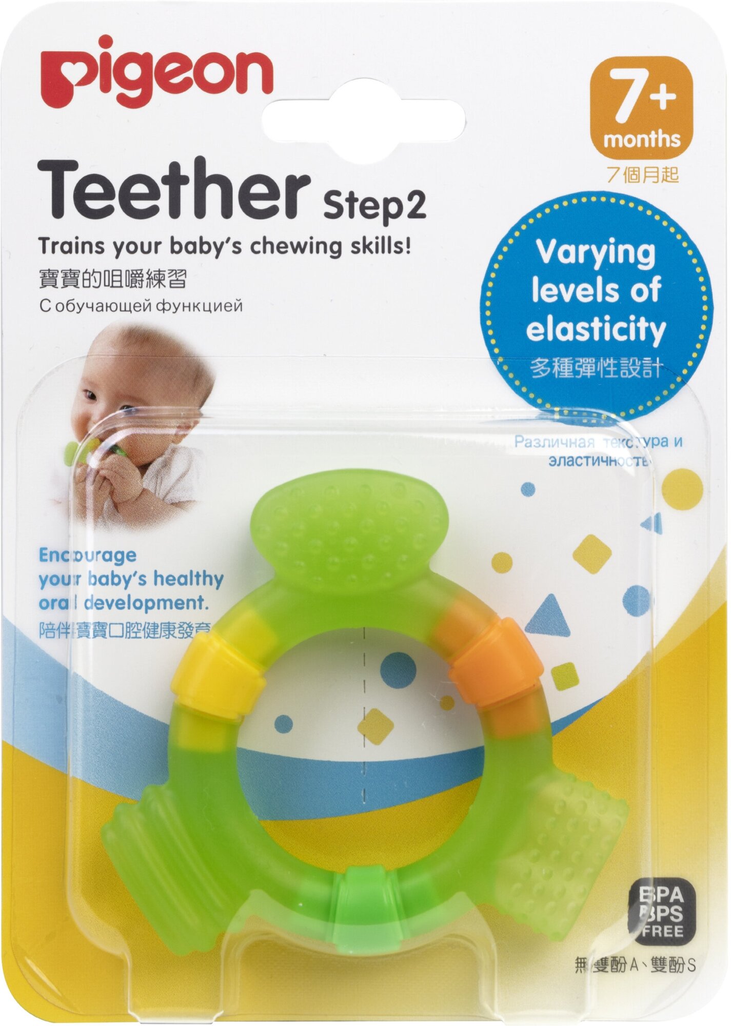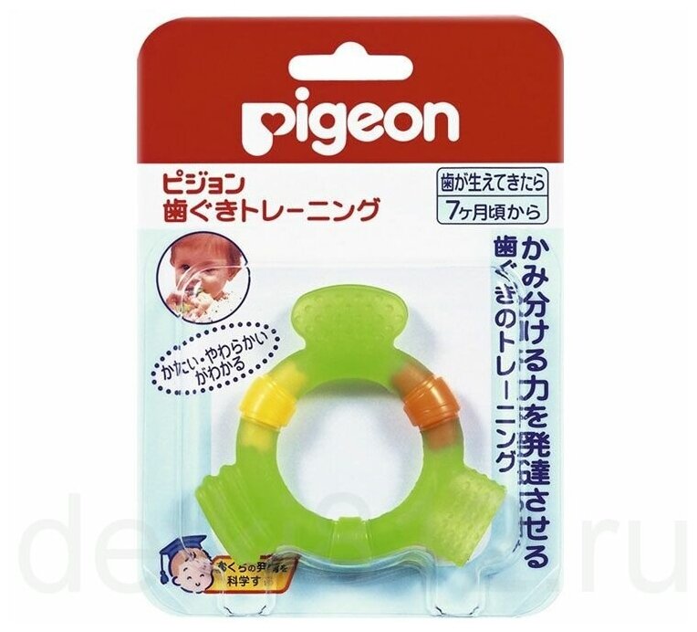 Прорезыватель Pigeon - функциональный обучающий аксессуар, ориентированный на малышей возрастом от 7 месяцев. Кольцевидная конструкция, разделенная на три сегмента с лепестками разной степени жесткости, способствует развитию навыков осязания, смыкания губ и освоению силы прикуса для подготовки к приему пищи. Идеальный баланс формы, размера и веса, а также приятный внешний вид - то, что нужно, чтобы заинтересовать и развеселить кроху, отвлекая от негативных ощущений, сопровождающих его в период появления первых зубов.