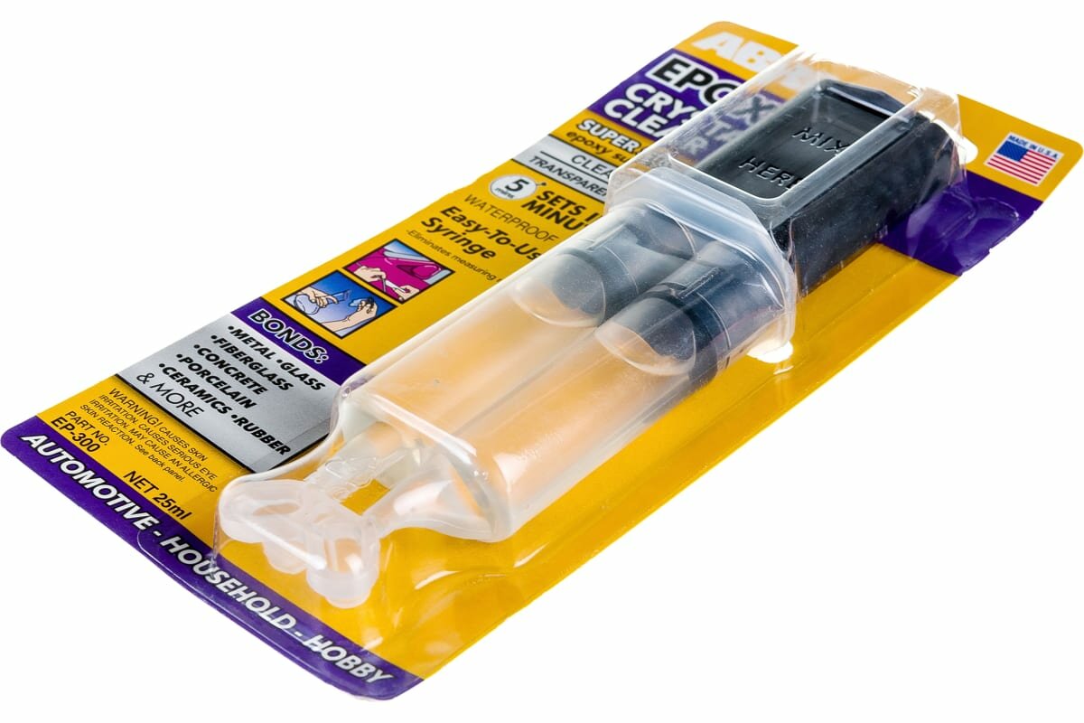 Эпоксидный клей ABRO EP-300 предназначен для использования в быту и для автомобиля. Склеивает металл, стекловолокно, стекло, бетон, керамику, фарфор, резину и большинство пластмасс. После высыхания остается невидимым. Устойчив к моющим средствам и большинству растворителей.