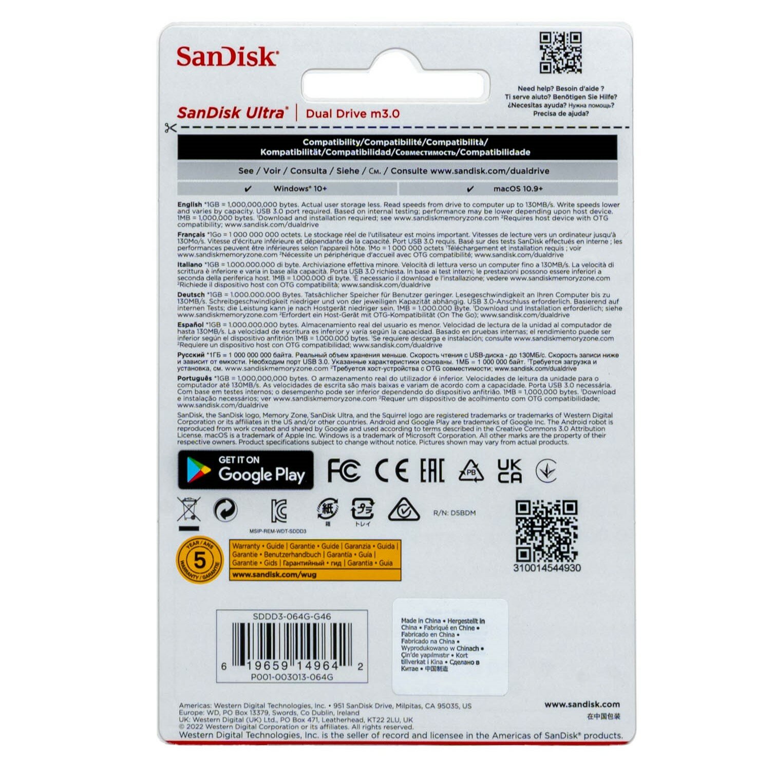 USB флешка SanDisk Ultra Dual m3.0 64GB (черный)