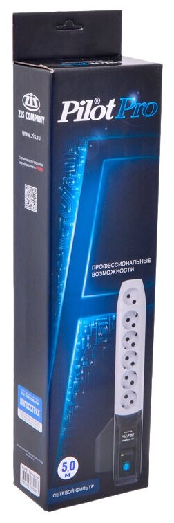 Сетевой фильтр Pilot Pro серый, длина шнура 5м, розеток: 6шт, номинальный ток 10A, максимальная нагрузка 2200Вт