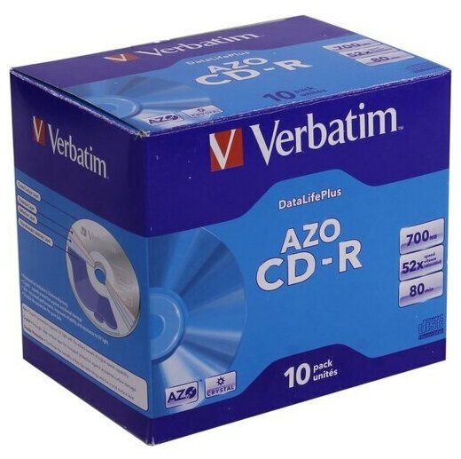 Диски CD-R Verbatim 700Mb 80 min 52-x Crystal AZO 10шт 43327