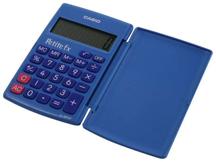 Калькулятор карманный Casio LC-401LV-BU-W-A-EP голубой, дисплей: 8-разрядный, однострочный, монохромный, питание батарея LR54 х 1шт.