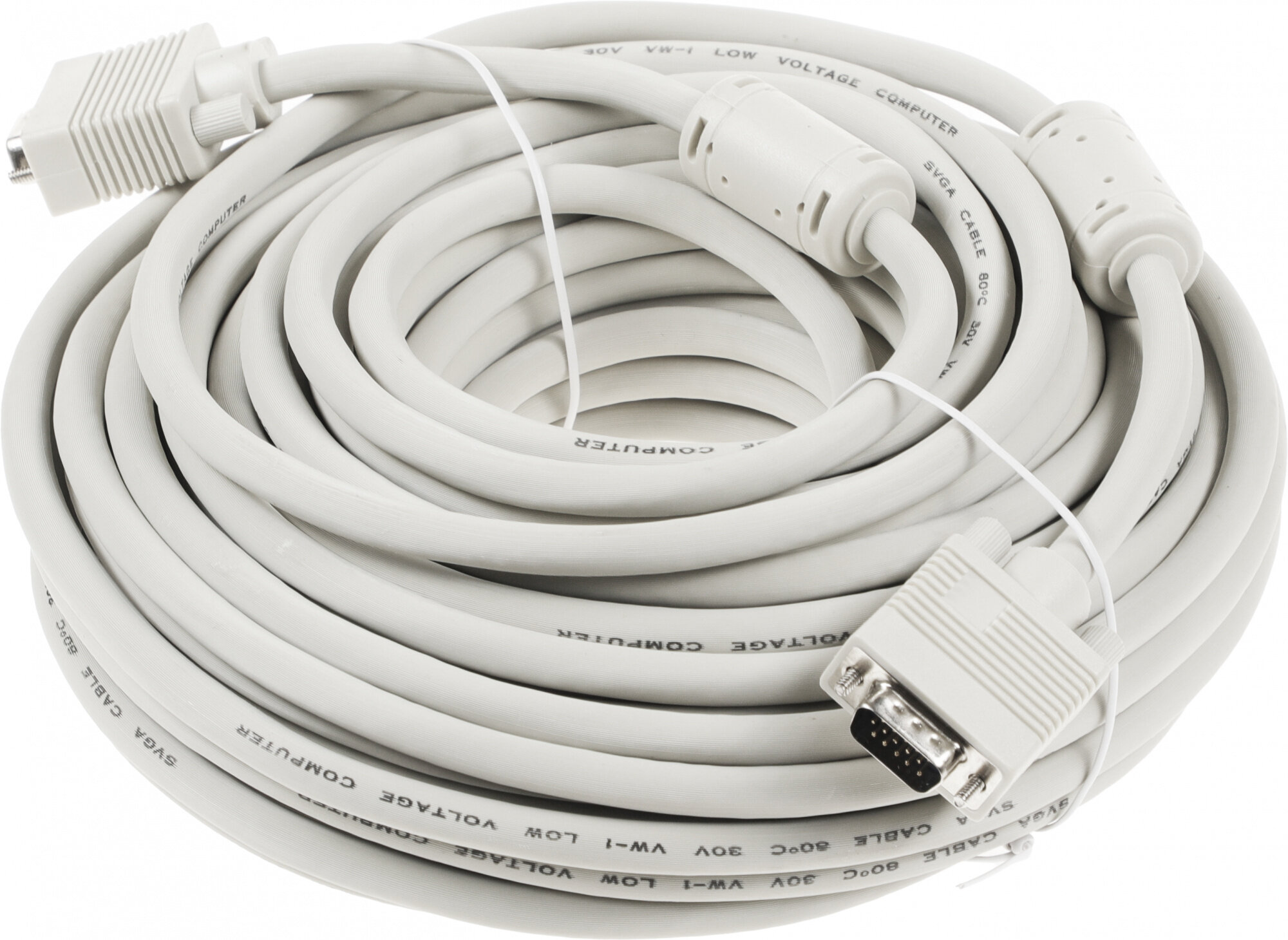 Кабель VGA кабель длиной 20 метров, дающий огромные возможности по размещению оборудования в больших помещениях. Встроенные ферритовые кольца блокируют помехи искажающие идущий по проводу сигнал, таким образом повышая его качество.