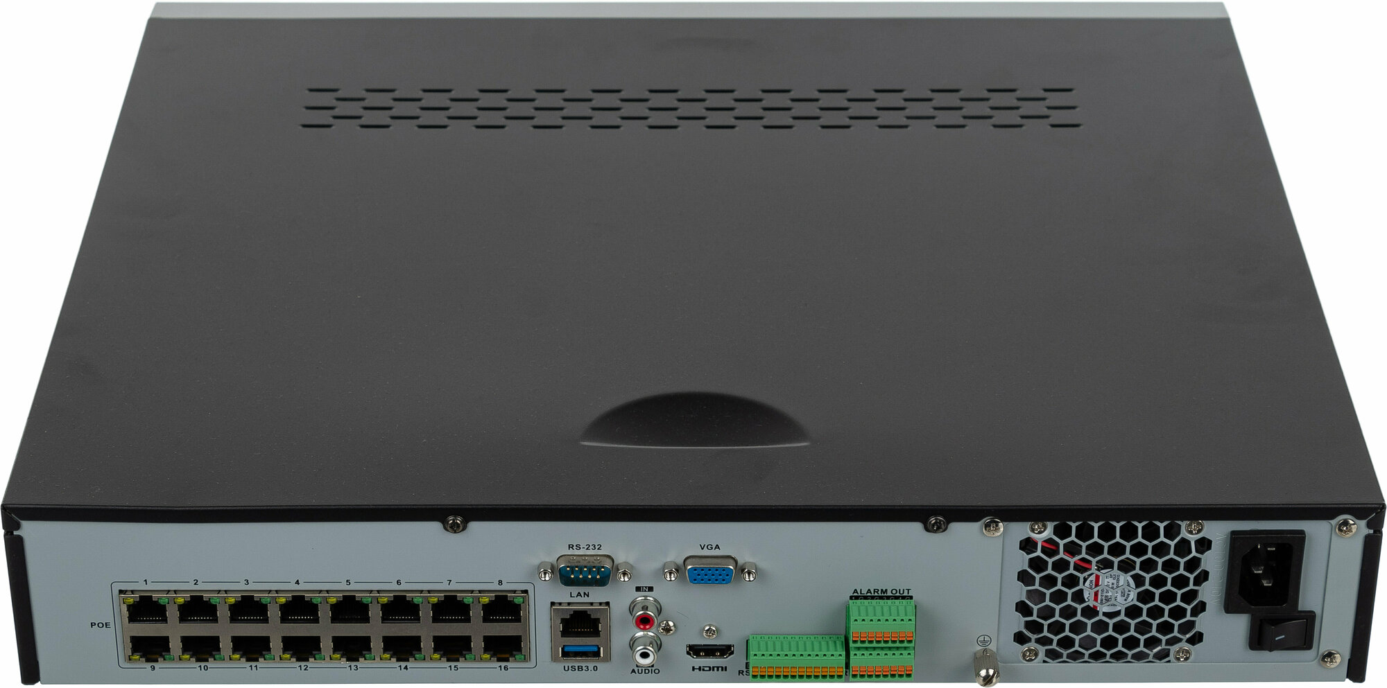 | Особенности | 16 каналов Запись видео с разрешением до 8Мп Вывод видео с разрешением до 4К Синхронное воспроизведение 4 каналов@4Мп 4 SATA HDD до 6ТБ 16 PoE интерфейсов с передачей до 300 метров 1 сетевой интерфейс RJ-45 10M/100M/1000M Ethernet |