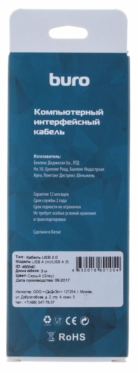 Кабель Buro USB A(m)/USB A(f) 3м. (bhp ret usb_af30) BHP RET USB_AF30 USB A(m) USB A(f) 485540