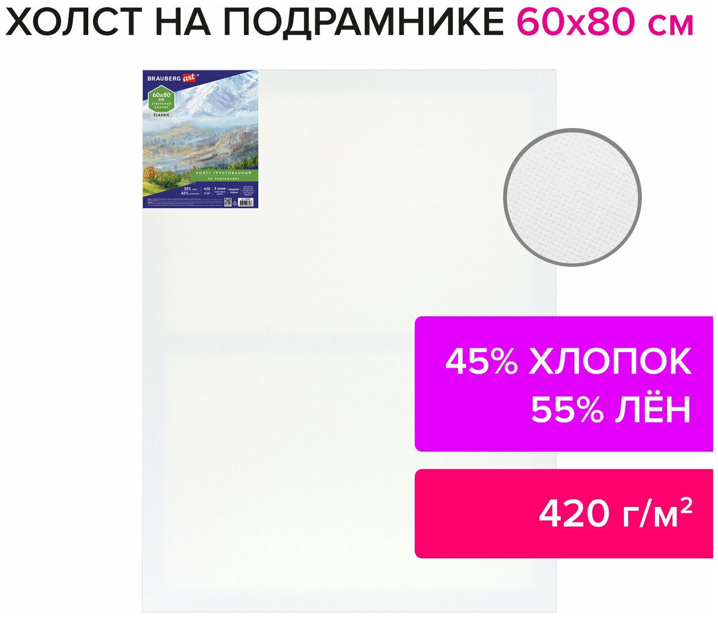 Холст на подрамнике BRAUBERG ART "CLASSIC" используется для работы масляными, темперными и акриловыми красками. Предназначен для учеников и студентов художественных школ, художников.