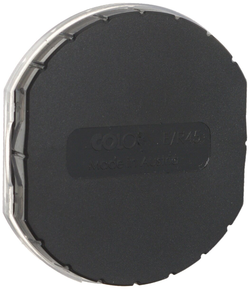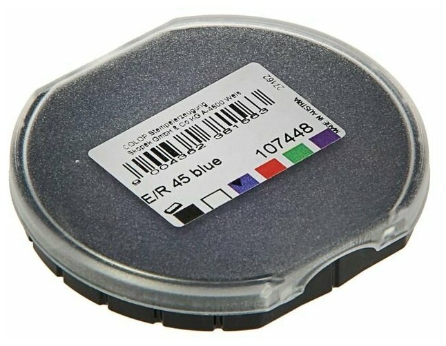 Сменная штемпельная подушка Colop E/R45 с краской синего цвета на водной основе с добавлением глицерина. Позволяет получить до 10 000 четких оттисков. Не пачкается при замене. Не рекомендуется заправлять краской - плотный верхний слой не пропустит ее внутрь. Поставляется в пластиковом футляре.