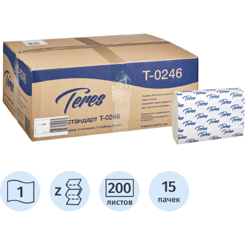 Полотенца бумажные Терес профессиональная Standart 200лист. (упак.:15шт) (т-0246)