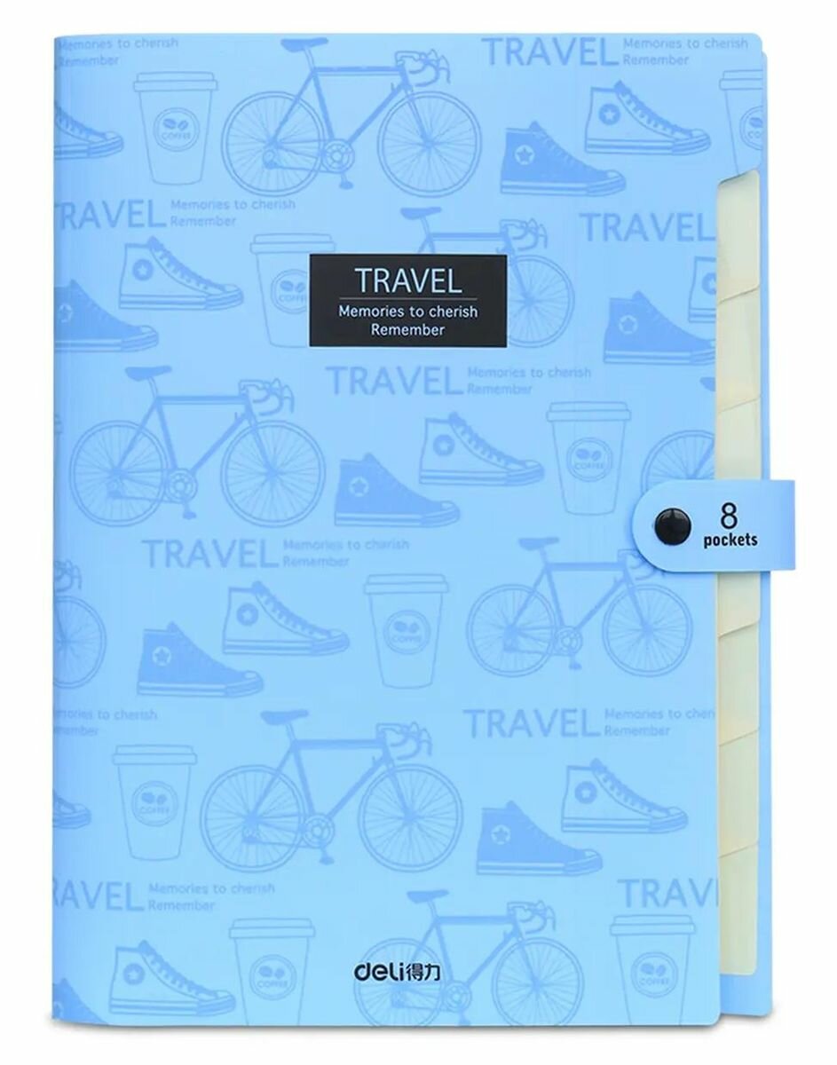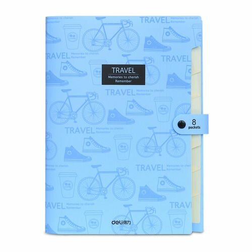 Папка-портфель на кнопке Deli 5737, цвет ассорти, 8 отдел., A4, пластик
