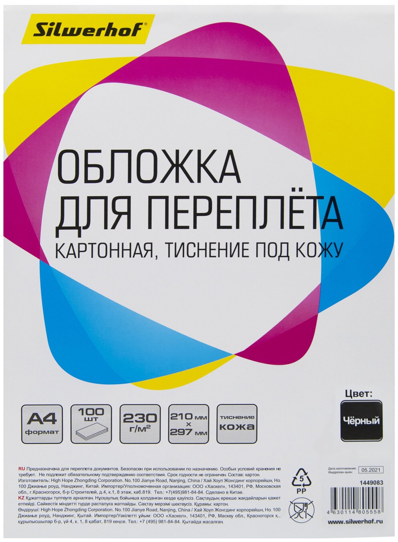 Обложка Silwerhof 100шт. (1449083) A4, 230г/м2, 100, черный