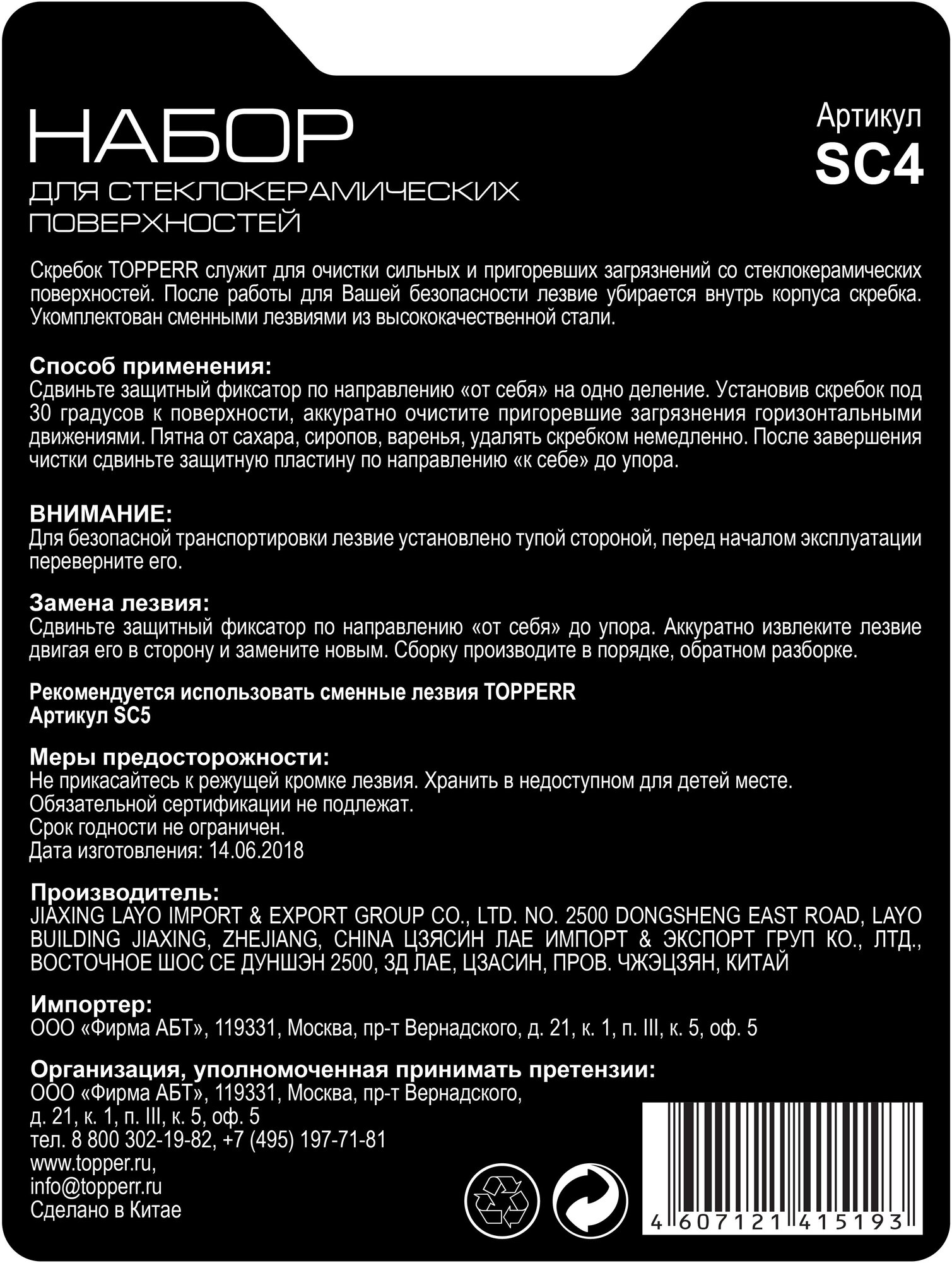 | Тип товара | скребок для стеклокерамики |