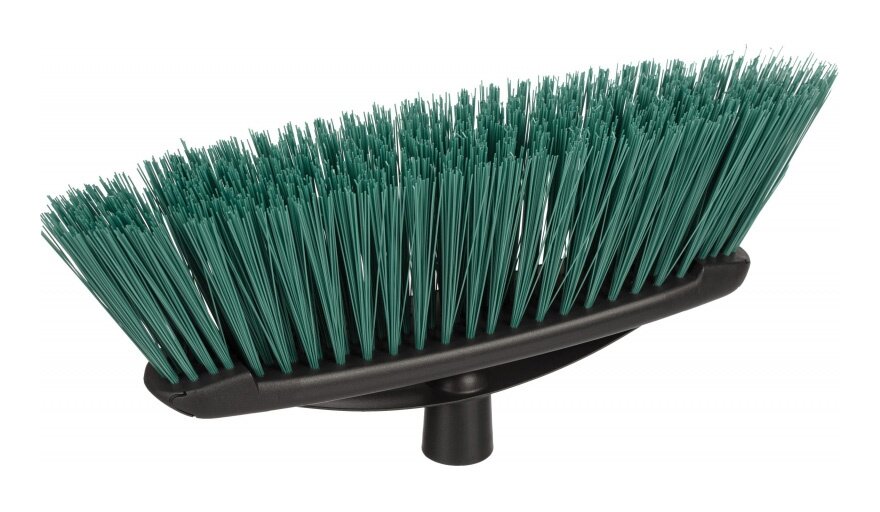 Экономичная щетка с жестким ворсом для ежедневного подметания напольных покрытий.На 100% сделана из переработанных материалов.Особенности и преимущества:— густая и жесткая щетина хорошо подметает и собирает мусор на шероховатых и структурированных поверхностях,— щетина гибкая и легко восстанавливается, принимая первоначальную форму,— ворс щетки имеет хорошее сцепление с поверхностями, при этом не повреждает их,— надежное крепление щетины к корпусу щетки,— гигиеничные моющиеся материалы,— экологичная — полностью изготовлена из переработанных материалов,— резьбовое крепление к ручке.Вес: 290 г.Размер: длина щетки 30 см, диаметр щетины 0,6 мм,длина щетины 7,5 см.Цвет щетины: зеленый.Жесткость щетины: жесткая.Состав: каркас щетины — полипропилен, щетина — 95% полиэтилентерефталат и 5% полипропилен.
