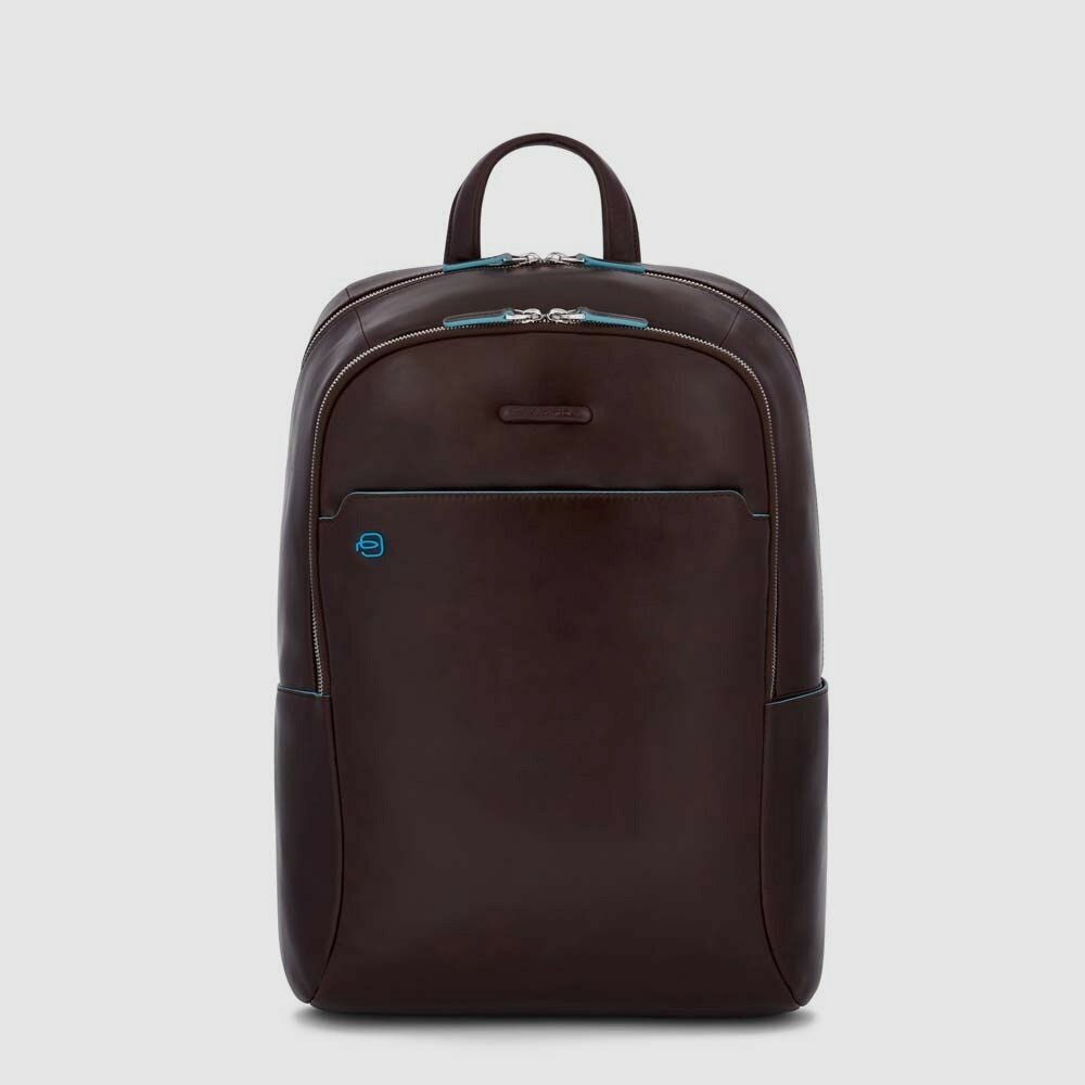 Blue Square. Мужской рюкзак с двумя просторными отделениями на молнии. Выполнен из натуральной кожи с синей окантовкой. Оборудован защитой от незаконного RFID-сканирования. Внутри держатели для пишущих инструментов, отделение для мобильного телефона, кармашек для метки Connequ и дополнительные кармашки. Снаружи на передней стенке дополнительное отделение на молнии. На боковой стенке складной держатель для бутылки. Возможность разместить ноутбук до 15,6 дюймов и планшетный компьютер до 11 дюймов. Система крепления к ручке багажной сумки с потайным карманом. Анатомическая спинка и удобные плечевые ремни не доставят дискомфорта при длительном ношении. Материал: натуральная телячья кожа. Цвет: темно-коричневый. Внутренняя отделка: полиэстер. Габаритные размеры: 32x43x14см, объем 19л, вес 1,062кг.