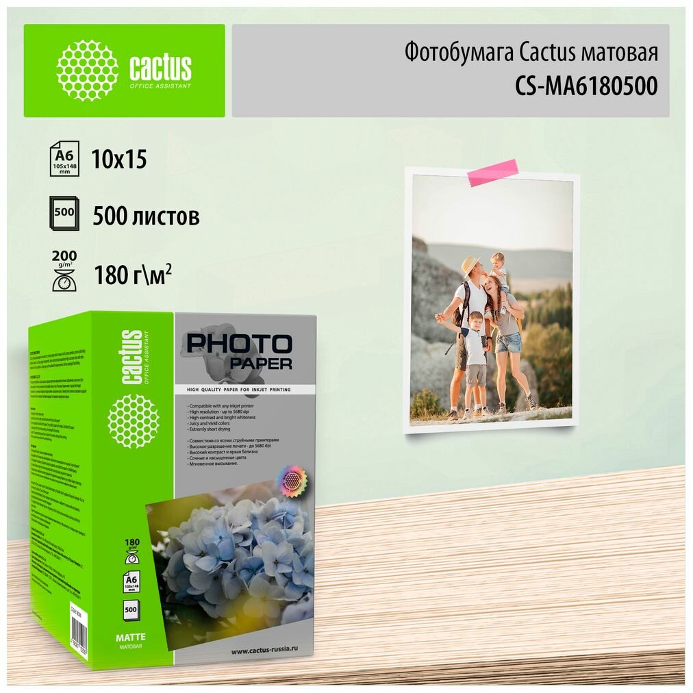 Фотобумага Cactus CS-MA6180500 A6/180г/м2/500л./белый матовое для струйной печати