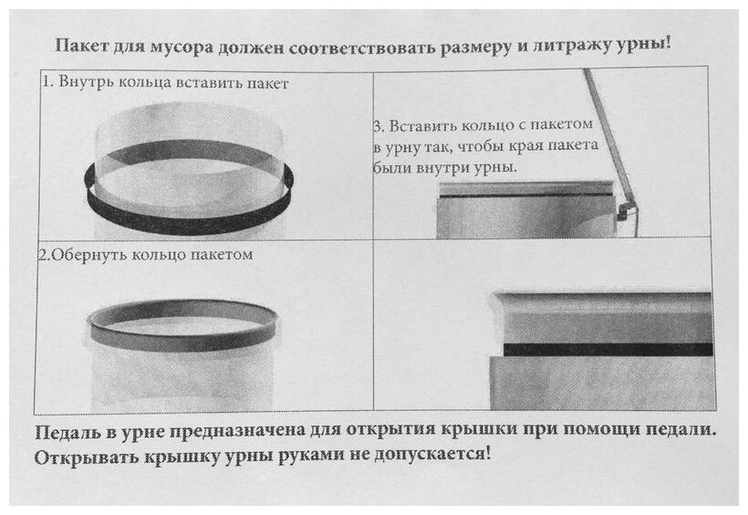 Ведро для мусора с педалью объемом 40 литров серого цвета представляет собой металлической контейнер с педалью с механическим открываем крышки. При нажатии на педаль, крышка мусорного бака поднимается. Внутри мусорного ведра с педалью находится кольцо-держатель для мусорных пакетов. В отличие от внутренних пластиковых ведер, мусорный пакет позволяет свободно извлекать мусор из контейнера, не оказывая дополнительное воздействие на крышку мусорного ведра с педалью. Само мусорное ведро, крышка и дно изготовлены из оцинкованной стали с полимерным покрытием, что позволяет его использовать во влажных помещениях, например в ванной комнате, на кухне, санузлах и др. Педаль изготовлена из стали толщиной 2 мм и покрыта полимерным покрытием серого цвета. Контейнер для отходов с педалью покрыт защитной пленкой. Особенностью нашего ведра с педалью является его ремонтопригодность, что делает его срок службы практически бесконечным. При необходимости мусорное ведро с педалью можно разобрать на 4 части: сам мусорный контейнер, крышка, педаль и тяги, обеспечивающие поднятие крышки. Мусорное ведро с педалью нашего производства изготовлено из стали толщиной 0,4-0,45 мм, что гарантирует значительно большую стойкость к деформации. В комплекте с данными урнами идут наклейки с информацией об утилизации СИЗ, 2 вида: утилизация бахил, утилизация масок и перчаток.