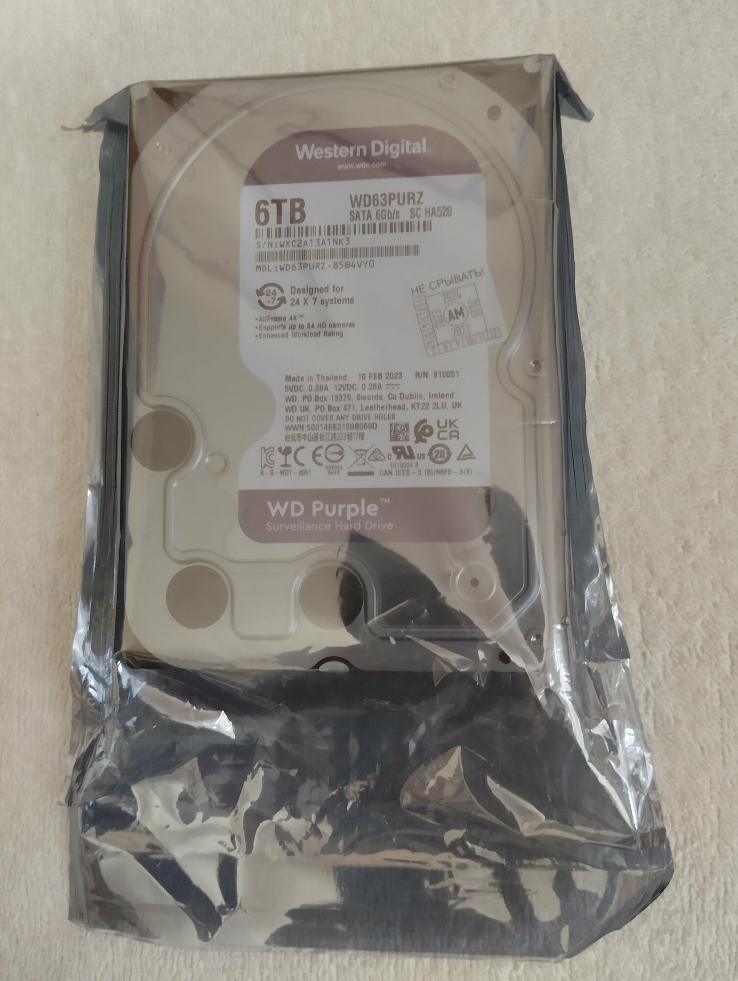 Модель: Original SATA-III 6Tb WD63PURZ Video Streaming Purple (5640rpm) 256Mb 3.5" (WD63PURZ)