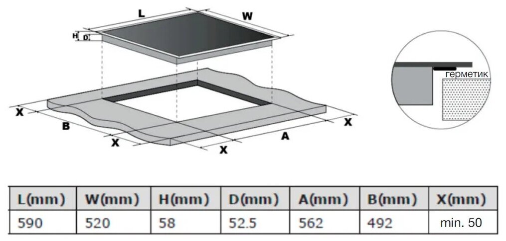 | Размер ниши (Ш*Г) | 560*490 мм |