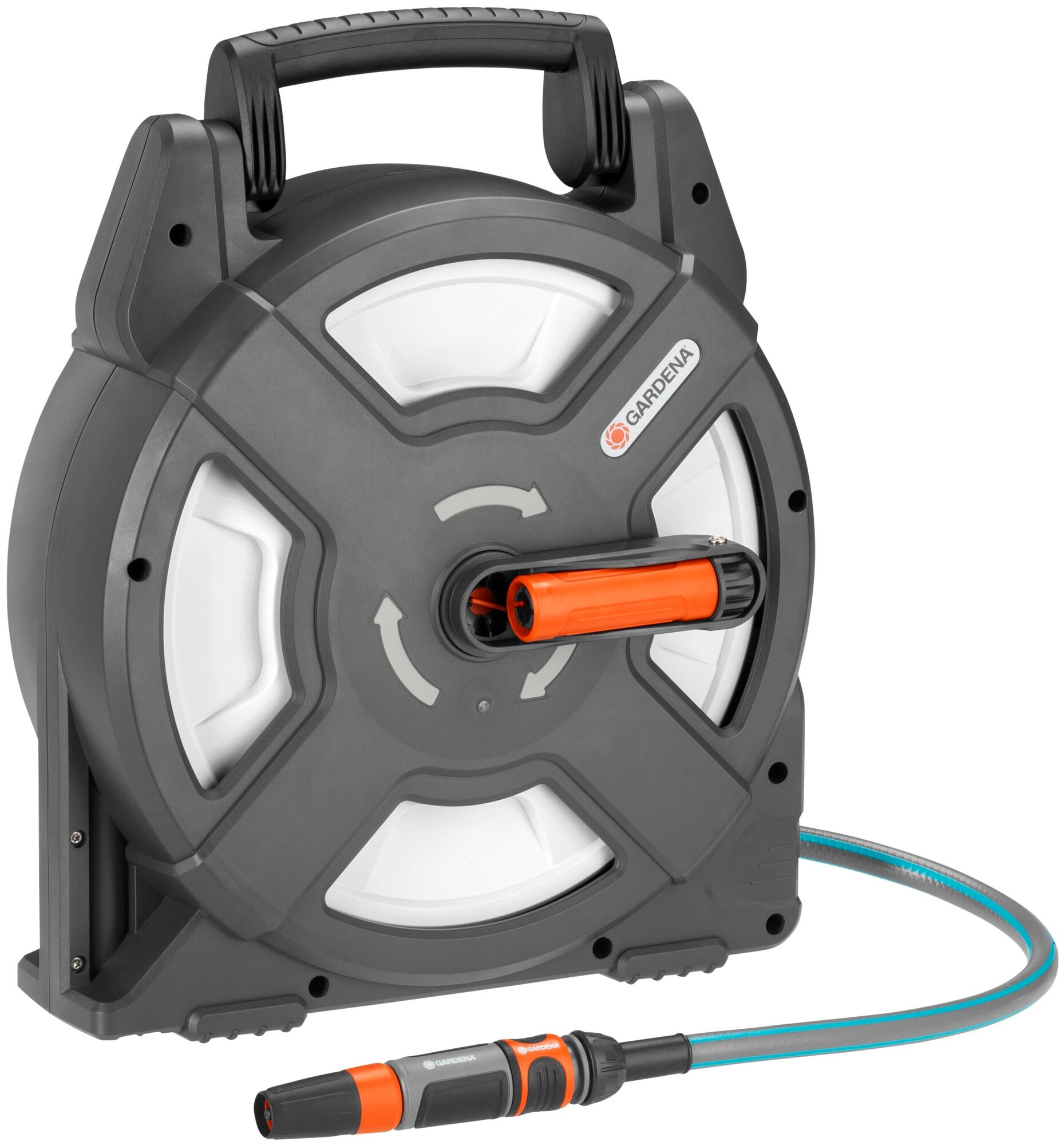 Катушка для шланга Gardena маленькая и легкая, она идеально подходит для орошения в небольших садах и на террасах, а также подходит для кемпинга.