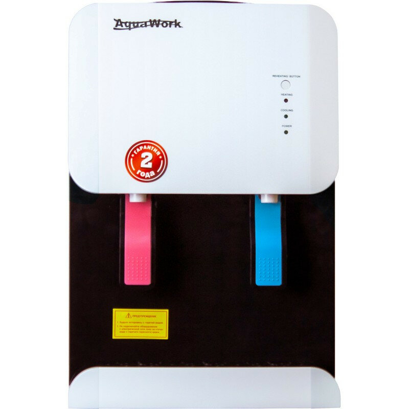Диспенсер Aqua Work 105-LR имеет компактный размер и оснащен удобными цветными кранами для наливания жидкости. Модель способна обеспечить холодной и горячей водой в большом количестве, что подходит для установки в офисах или общественных местах. Диспенсер Aqua Work 105-LR оснащен компрессорной системой охлаждения, которая доводит 2 л воды в час до температуры 10 °C. Производительность нагрева достигает 7 л /ч. На передней части корпуса есть световые индикаторы, которые обеспечивают комфортные условия эксплуатации. Боковая поверхность из стали удобна для установки держателей под стаканы. В нижней части устройства есть удобный шкаф объемом 9.5 л.