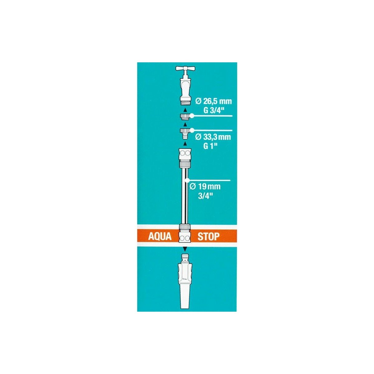 - 2 коннектора для шлангов диаметром 13-15 мм (1/2" - 5/8"), один из них с функцией аквастоп (артикулы 18216 и 18214)
