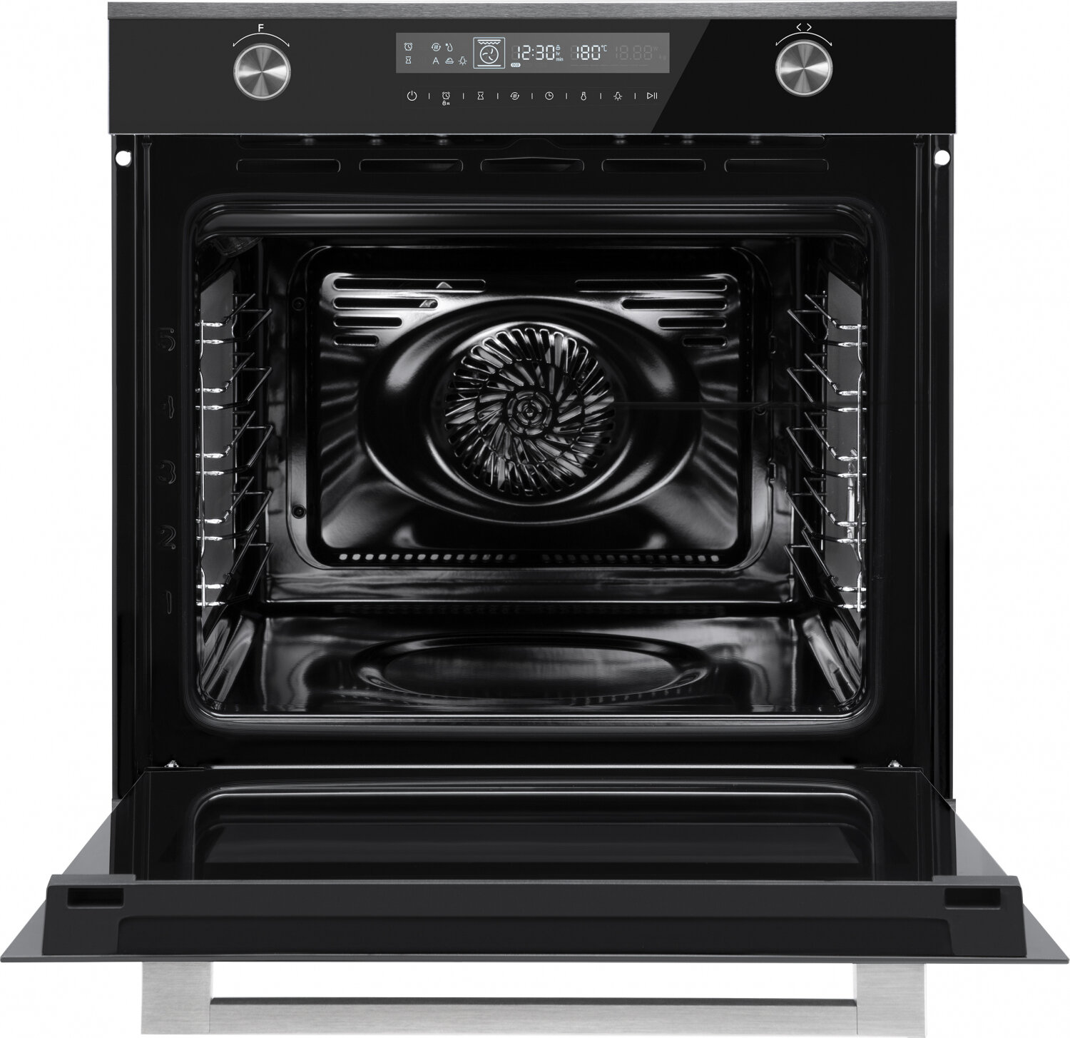 Духовой шкаф Weissgauff EOM 751 PDBSX черный/нержавеющая сталь, электрическая духовка, объём 72л, покрытие: эмаль легкой очистки, электрический гриль, программ духовки: 13, независимое управление, переключатели поворотные/сенсорные