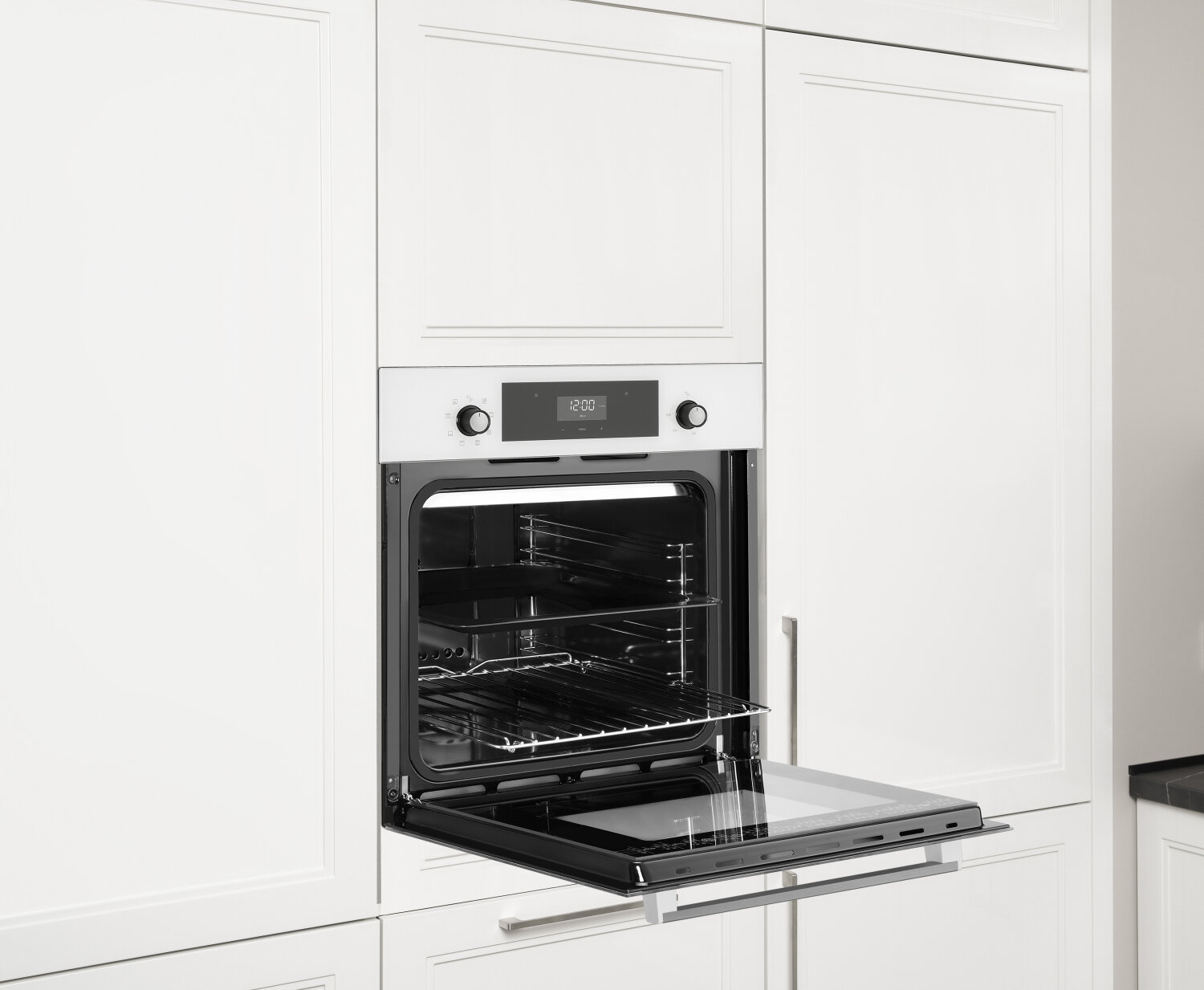 Духовой шкаф Weissgauff EOV 302 SW белый, электрическая духовка, объём 64л, покрытие: эмаль легкой очистки, электрический гриль, программ духовки: 8, независимое управление, переключатели поворотные/сенсорные