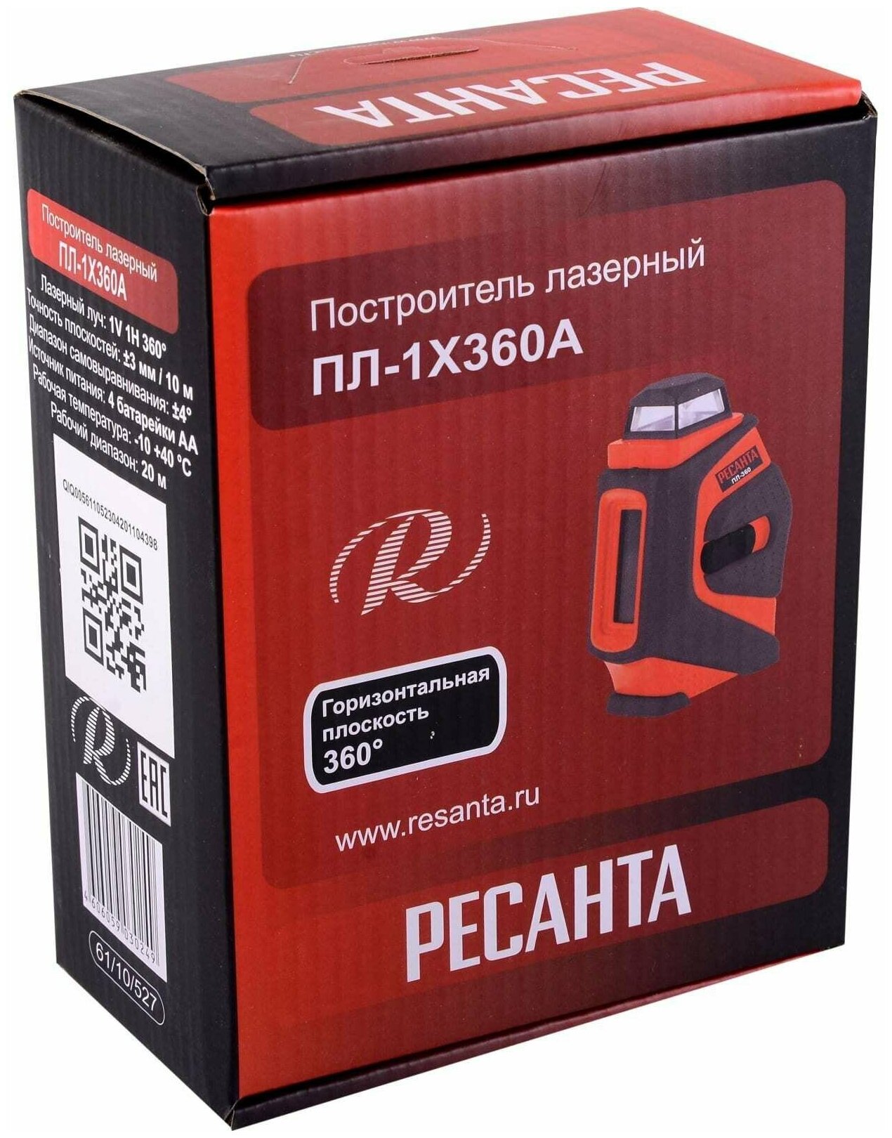 Лазерный нивелир Ресанта ПЛ-1Х360А, 2 класс лазера, цвет луча красный,2луч. (61/10/527)