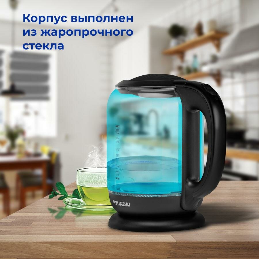 Чайник электрический Hyundai HYK-G4808 2200 Вт чёрный малиновый 1.8 л стекло