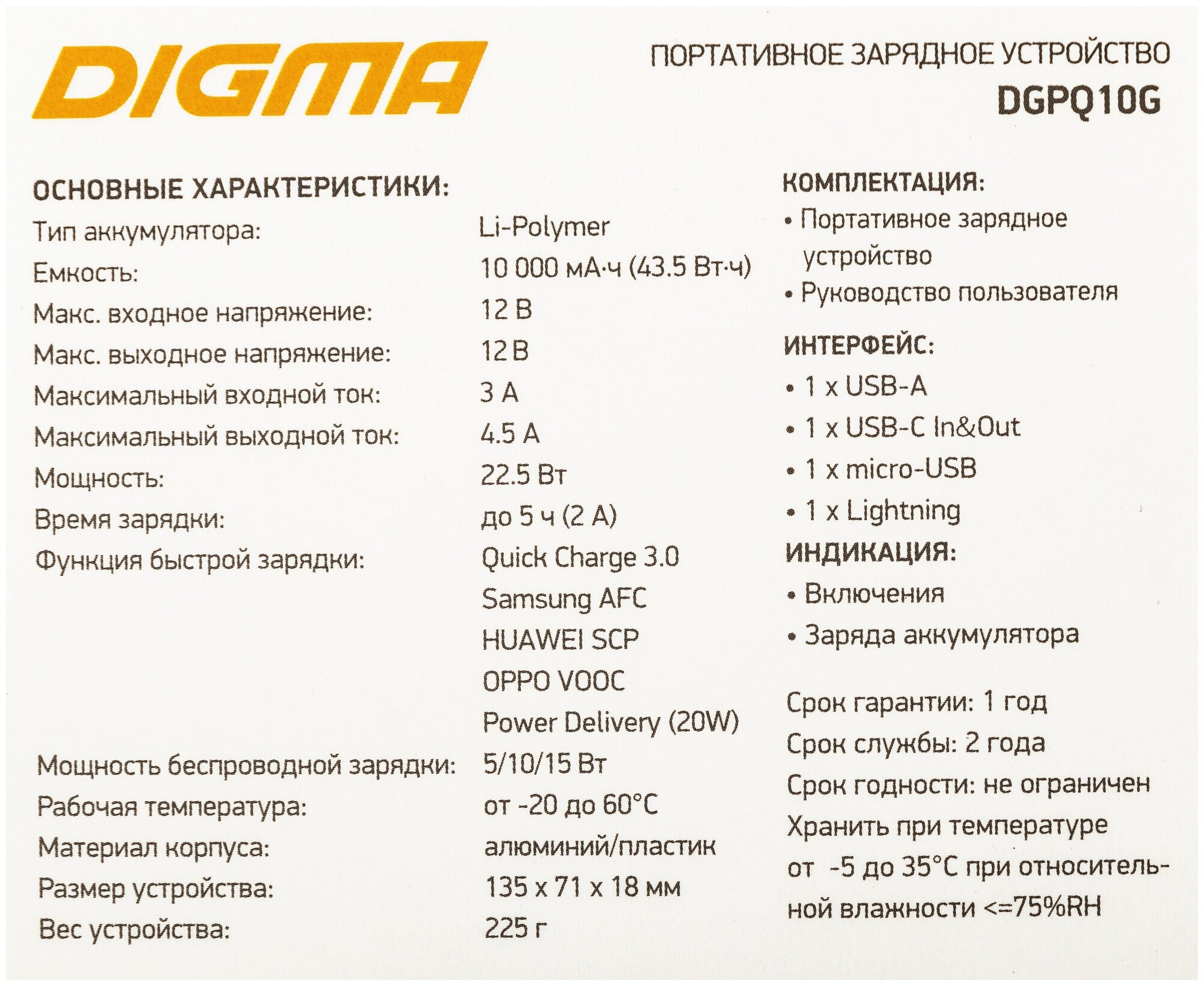 Мобильный аккумулятор DIGMA DGPQ10G синий (dgpq10g22cbl)