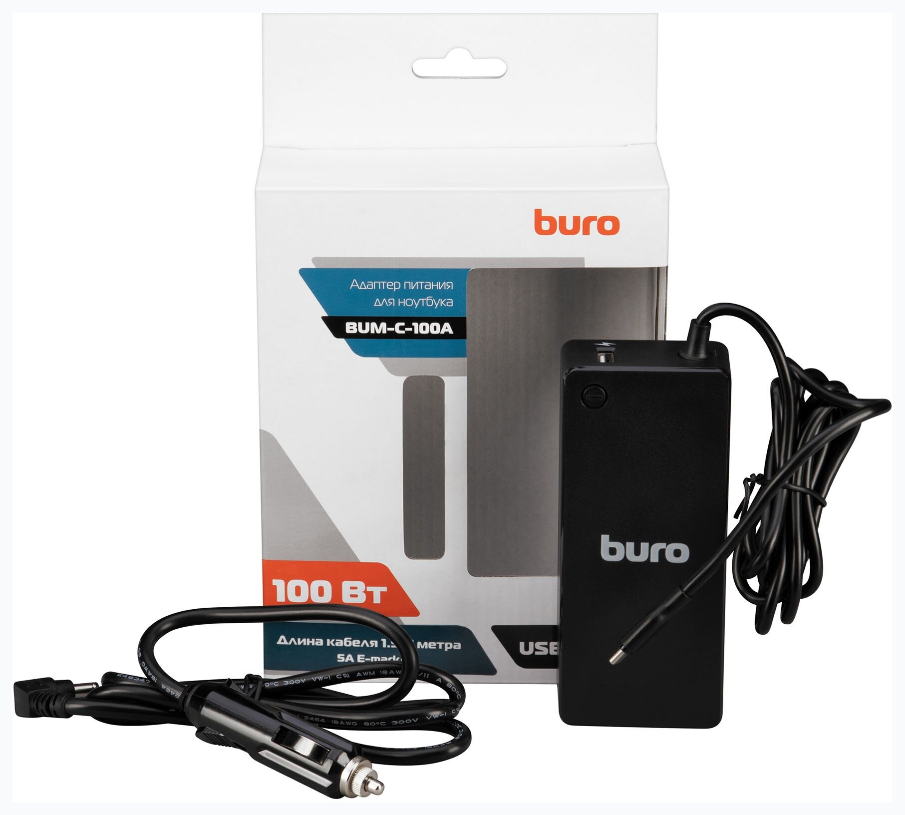 Блок питания Buro BUM-С-100A черный, мощность 100Вт, выходное напряжение от 5 до 20В, максимальный ток 5A, длина кабеля 1.5м, питание от прикуривателя