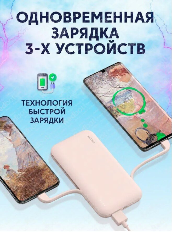 | Особенности | быстрая зарядка, встроенный кабель, индикатор уровня заряда |