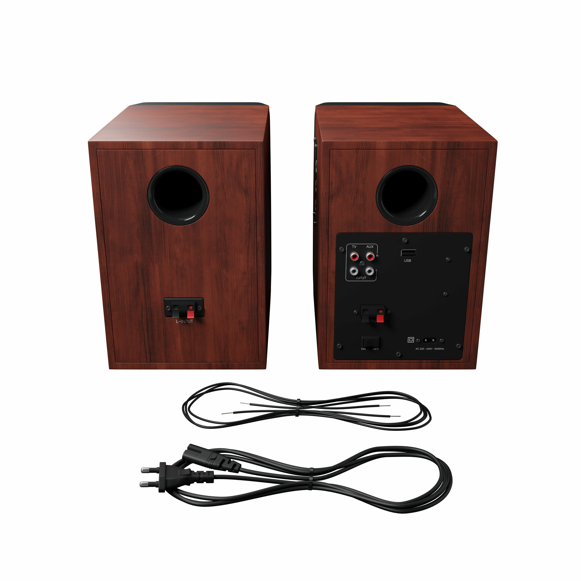 - По классике смотрятся на рабочем столе, широкополосные, хорошо и красиво воспроизводят звук, музыку, фильмы. мощность 55 Вт. управление при помощи пульта. Можно даже вставить флешку при необходимости