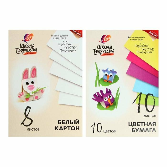 Набор белого картона "Школа творчества" А4, 8 листов, немелованный