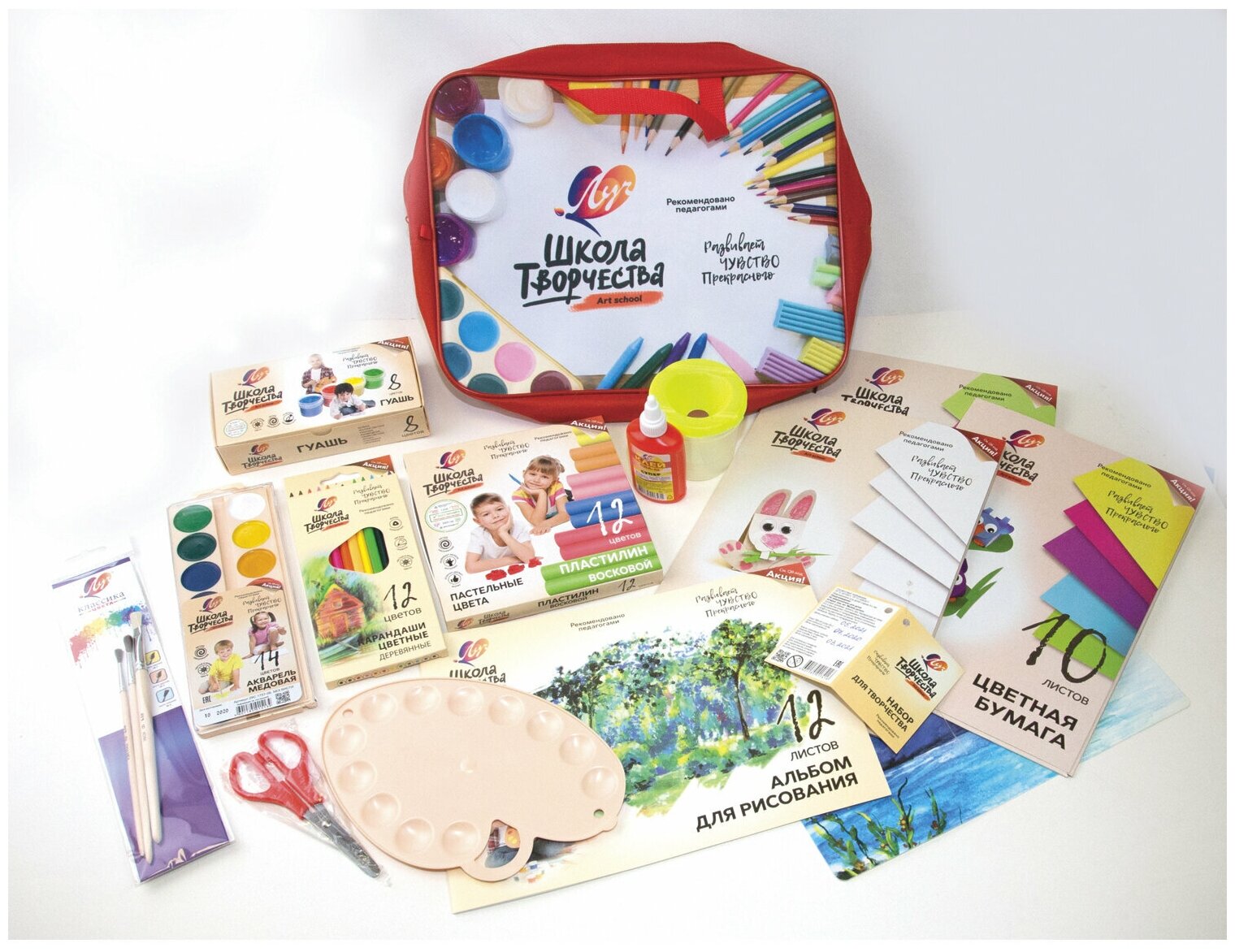 Подарочный набор Луч - это комплект полезных и нужных товаров для творчества из линейки "Школа Творчества". В нем собраны только качественные инструменты и материалы: карандаши, краски, пластилин, бумага и аксессуары для рисования.